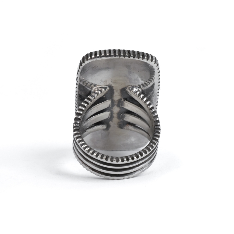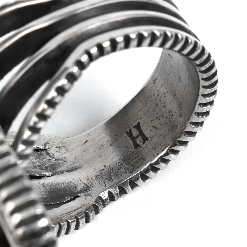 | ご注意 | ※ハンドクラフト特有のゆがみ・ずれ等がある為、表記サイズには多少の誤差がございます。 ※銀は経年で硫化する為、画像より黒ずみが増える、またはより綺麗に磨かれてのお届けとなる場合がございます。 ※インディアンジュエリーは伝統的な手仕事による製法上キズ・銀面のムラ・接合のラフさなどが多く見られるジュエリーです。味わいのうちとしてお楽しみください。 |
