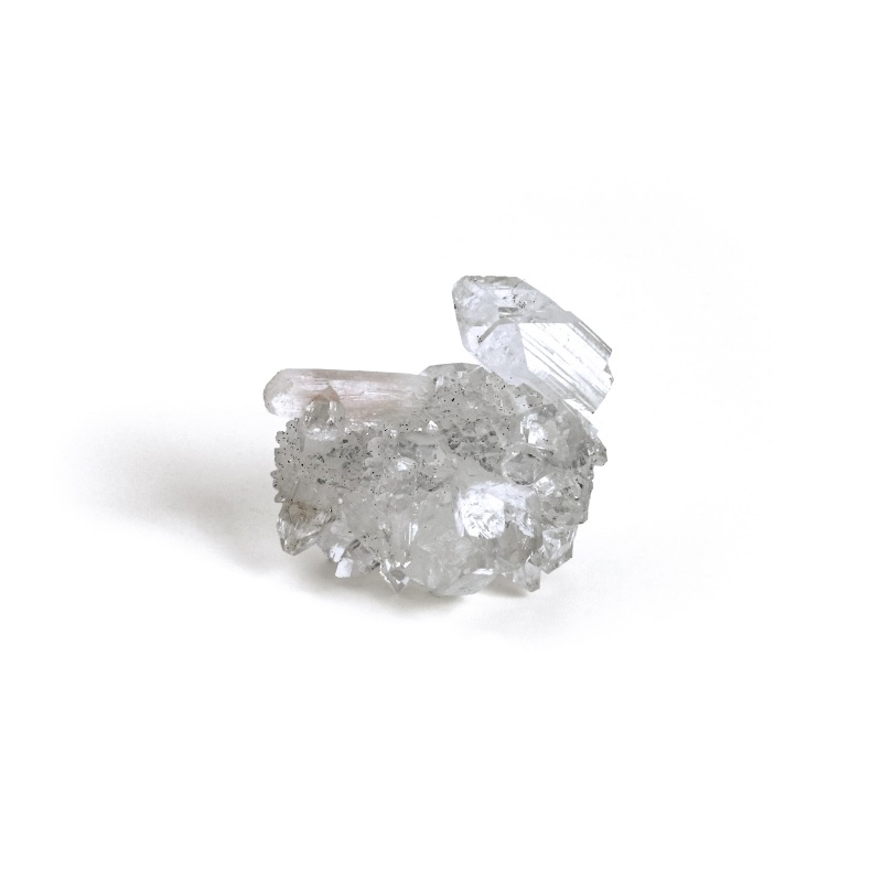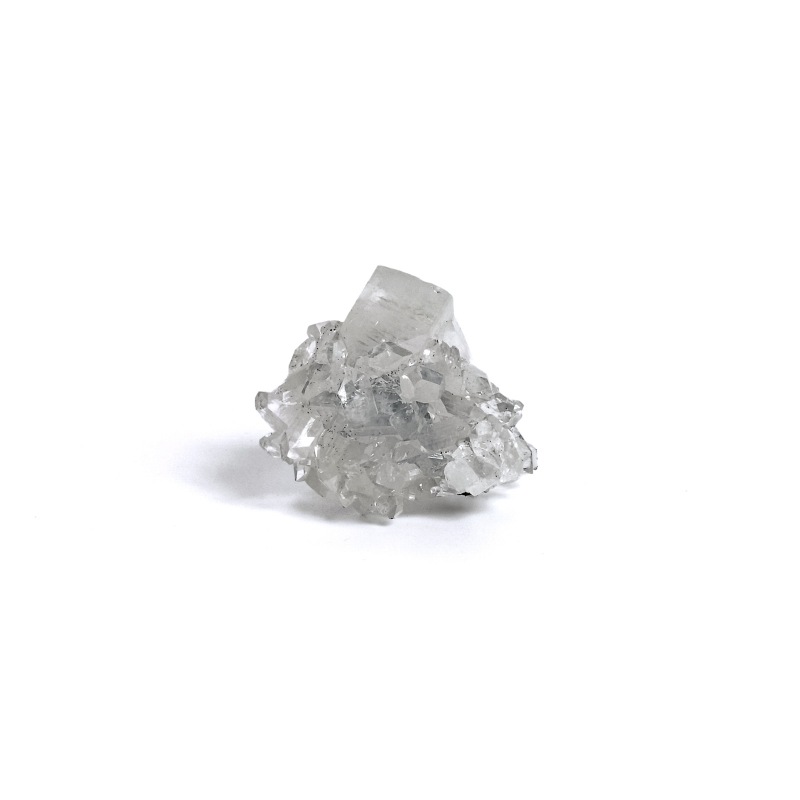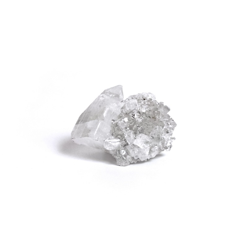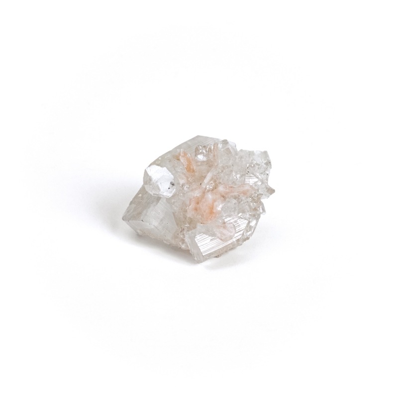 【Apophyllite】和名を魚眼石(ぎょがんせき)と呼び、輝きが魚の眼に似ていることが由来です。フッ素魚眼石、水酸魚眼石、ソーダ魚眼石と3つに分類分けされますが、標本用などで流通するもののほとんどがフッ素魚眼石になります。無色、白色、緑色、ピンク色と多くの色調で産出し、南インドでは良質な結晶の産地として知られています。