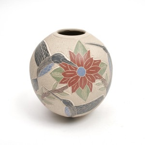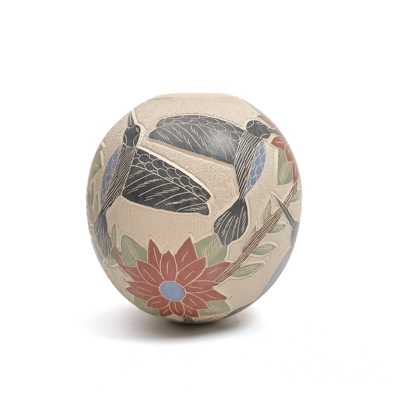 ハミングバードが描かれたボール型壺
