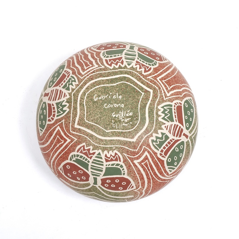 メキシコ北西部チワワ州のフアン・マタ・オルティスという村で作られている陶器。村近郊にある古代遺跡“Paquime”(パキメ)では、古代遺跡時代に高い陶芸技術が確立されていました。その時代に作られていたパキメ様式の陶器を1970年ごろにJuan Quezada Celadoが再現したのが、Mata Ortiz potteryのはじまりです。古代遺跡時代の技法を復元し広めたことで、マタ・オルティスは陶芸の村として知られることとなり、現在では300ほどの世帯でパキメ様式の陶器が作られています。村周辺でとれる良質な土を、電動ろくろを使わず手で成形し、自然染料にて色付けしたあとに窯ではなく、屋外焼成にて焼かれています。パキメの古代遺跡は、アメリカのプエブロ文化との交流があったことを示すものとしても知られており、アメリカンプエブロ族のアコマの陶器文化の源流とされるアナサジ文化の陶器の製法や仕様と共通点が見受けられます。