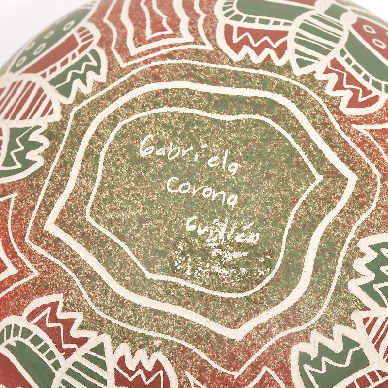 アメリカ大陸ではスペイン人が来る以前から盛んな陶器文化がありました。古い遺跡からは特有の紋をほどこされた陶器が多数出土しています。伝統的な柄やこうした発掘品をもとに今でも多くの陶器が作られ、特に穀物を守るための「壺」は豊作や永続を祈る象徴として実用だけでなく、祈りの道具やアートピースとして多様な制作されています。