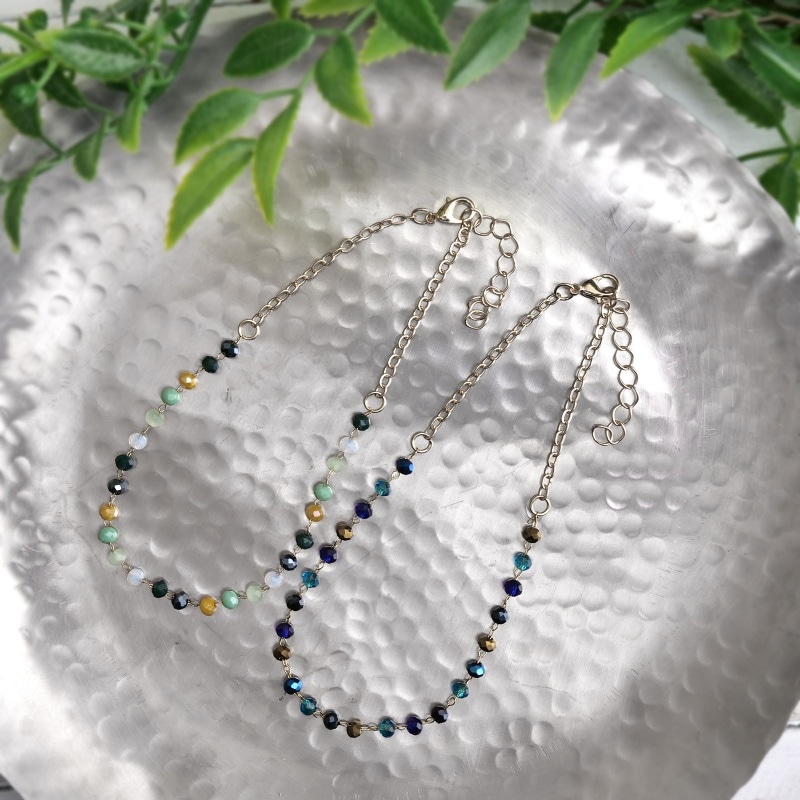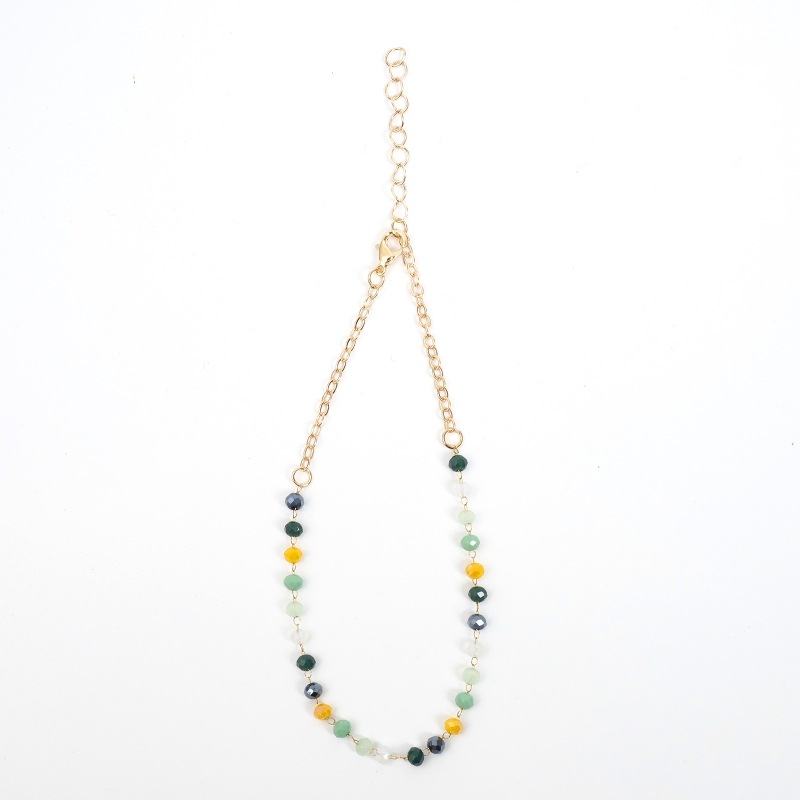 小粒のカットビーズが可憐なアンクレット。落ち着いたカラーをコーデのアクセントに。