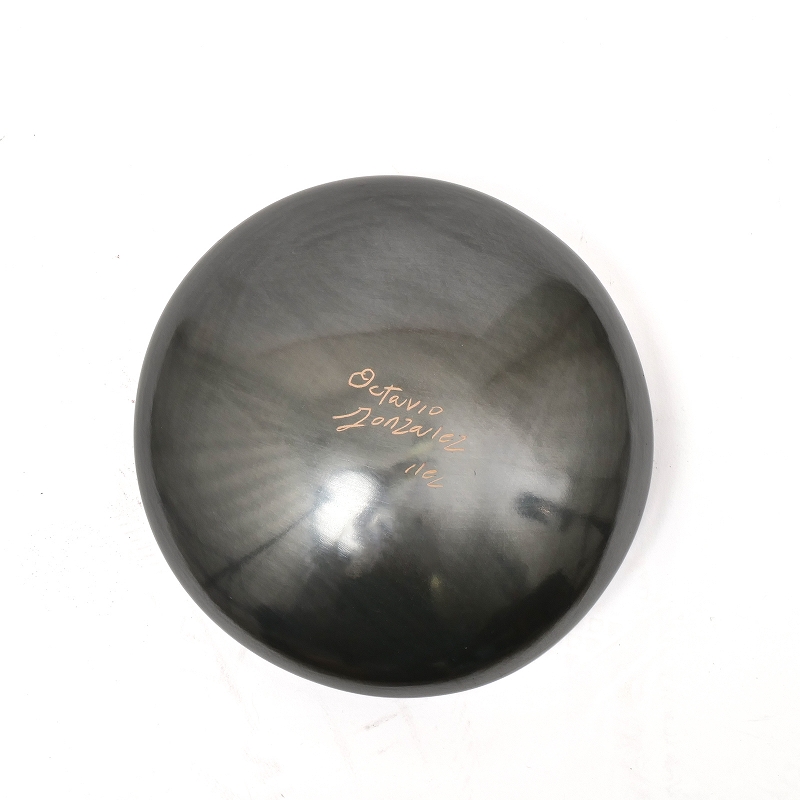 マタ・オルティス陶器 by Octavio Gonzalez シードポット ブラック 円盤型 壺 赤塗り