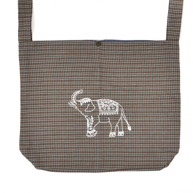 インドを連想させるモチーフがプリントされたチェック柄ショルダーバッグ