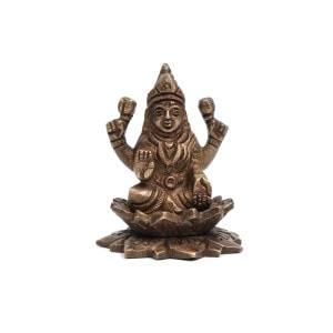 小さいのにしっかりとした重みがあり、重厚感のある真鍮でできたインドの神様の置物です。この置物のモチーフ、ラクシュミは、ヒンドゥー教の女神で、美、富、豊穣、幸運を司ります。ヴィシュヌ神の妻であり、仏教では吉祥天として、日本では七福神の一柱として、特に吉祥天として親しまれています。玄関やデスクに置けば、ラクシュミがいつでも見守ってくれます。