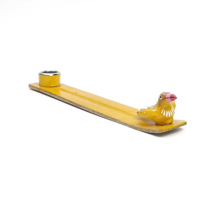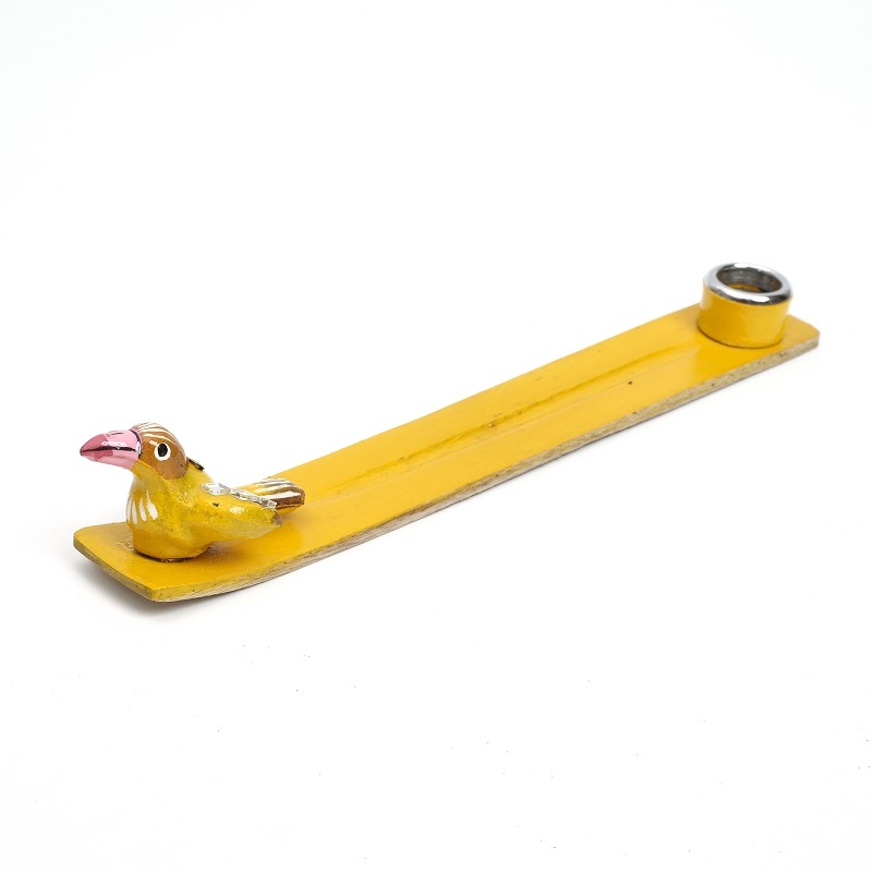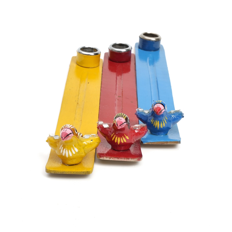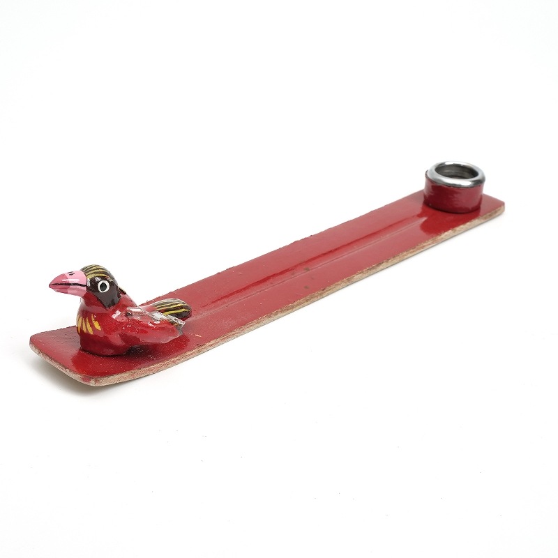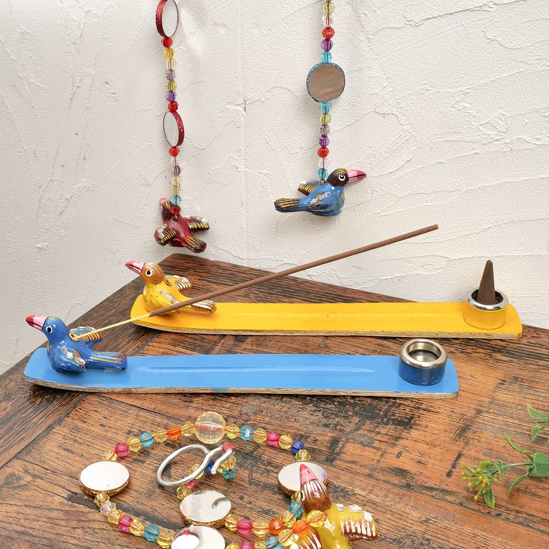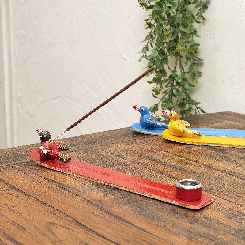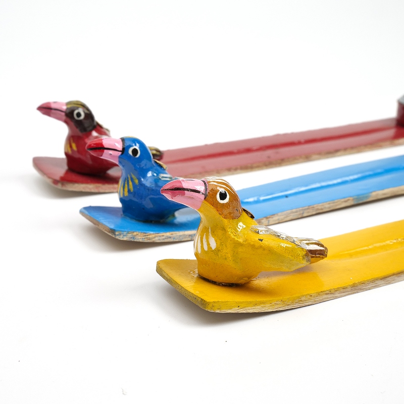 スティックタイプ、コーンタイプの両方使えるお香立て。香立ての先端には可愛い鳥がとまってます。ひとつひとつインドの職人さんによって作られた、手仕事のあたたかみを感じられる素朴な一品。