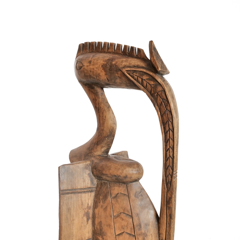 熱帯に生息する「サイチョウ」という鳥がモチーフ。カラオの豊満な腹部は女性を意味し、クチバシは男根を象徴していると言われています。子どもをたくさん授かり、子孫や村が繁栄するようにという願いが込められています。くちばしに細かい模様が入っているのが特徴です。