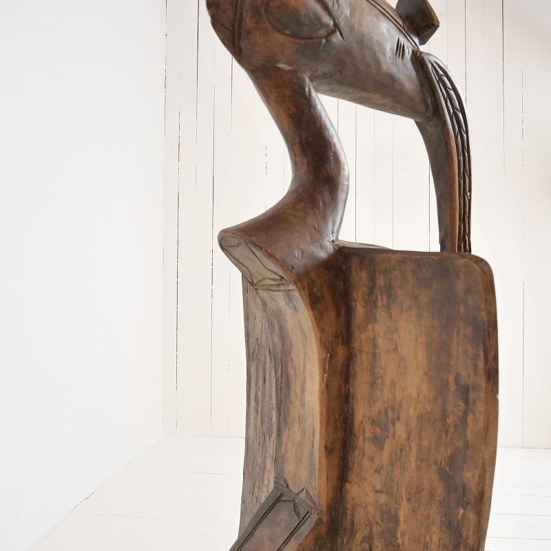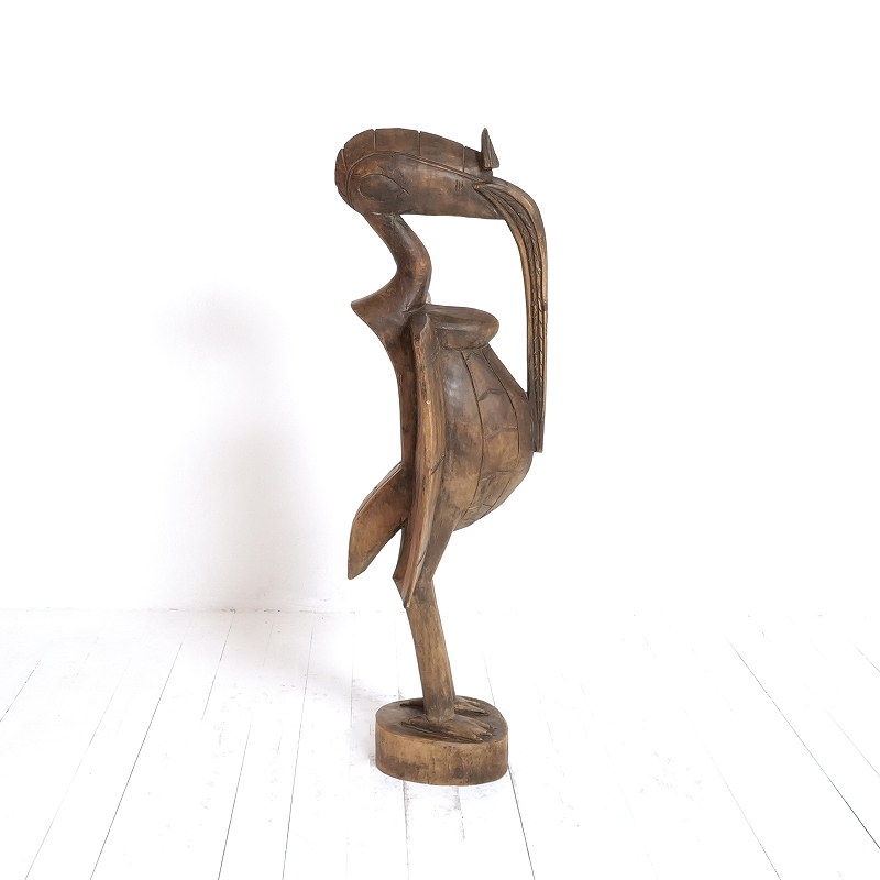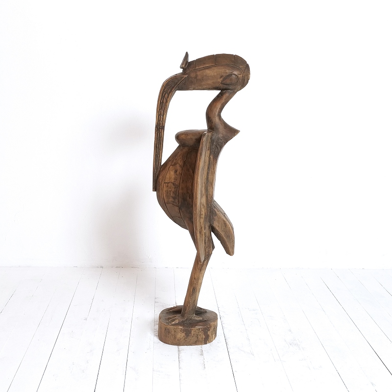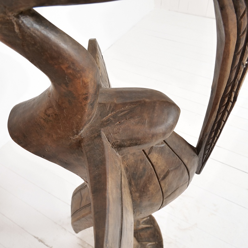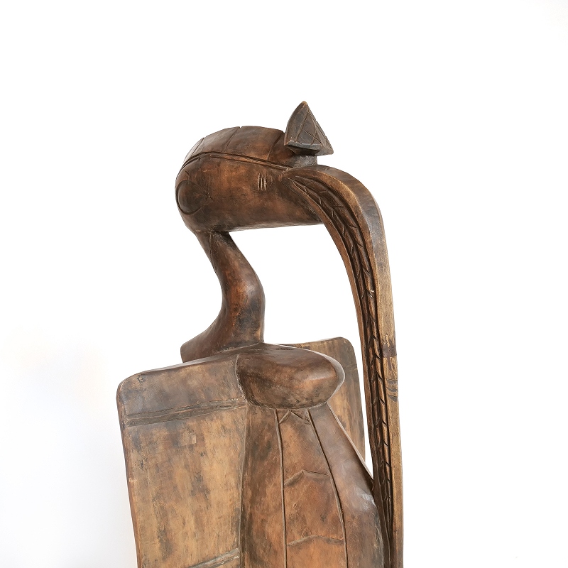 熱帯に生息する「サイチョウ」という鳥がモチーフ。カラオの豊満な腹部は女性を意味し、クチバシは男根を象徴していると言われています。子どもをたくさん授かり、子孫や村が繁栄するようにという願いが込められています。アフリカン美術をお部屋のアクセントにいかがでしょうか。