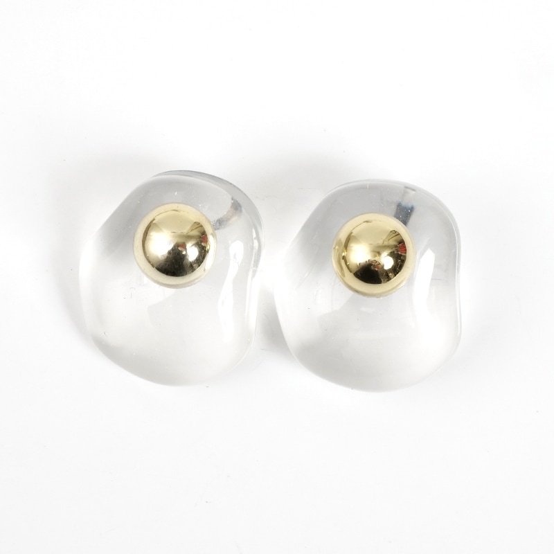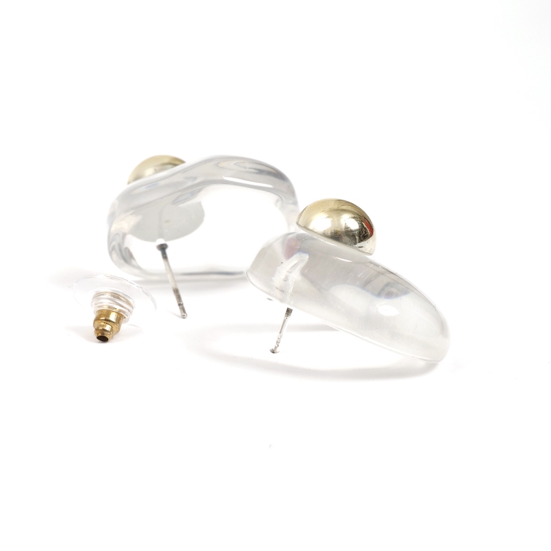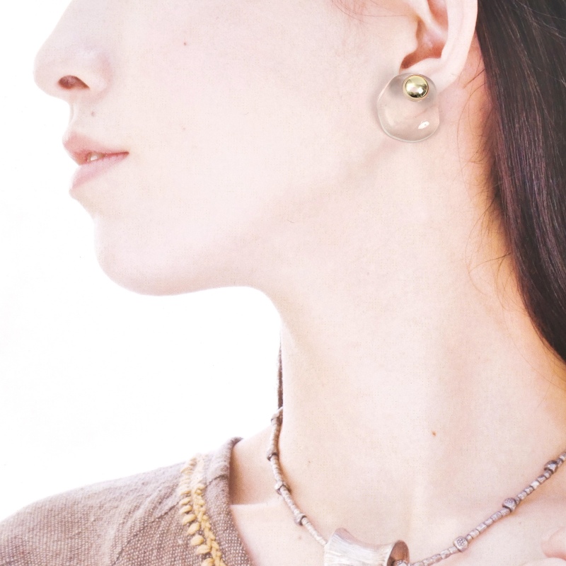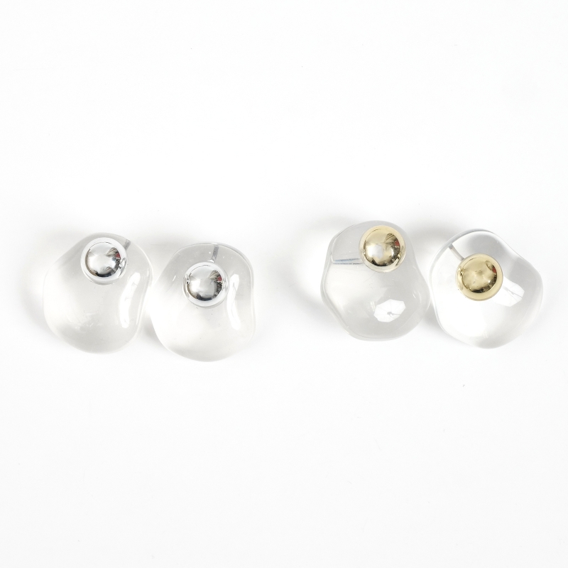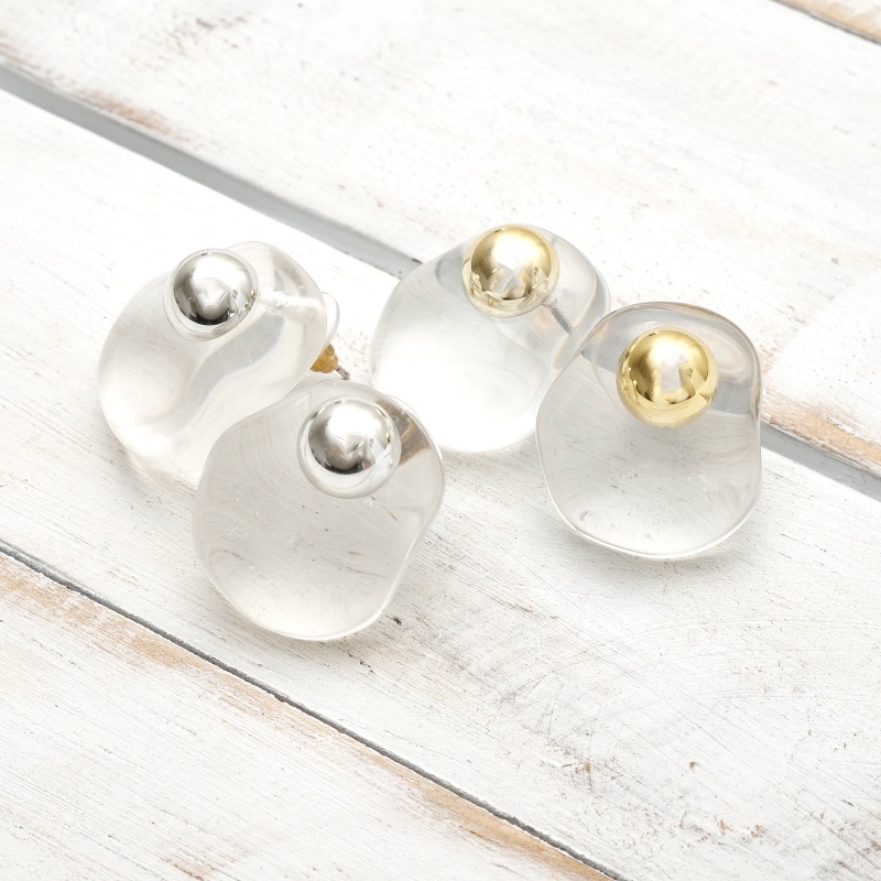 水滴のようなクリアパーツが印象的なピアス。厚みのあるモチーフはシンプルながらもしっかりとした存在感。遊び心のあるコーデのアクセントとしてはもちろん、日常使いにも取り入れやすいデザイン。