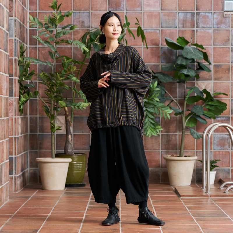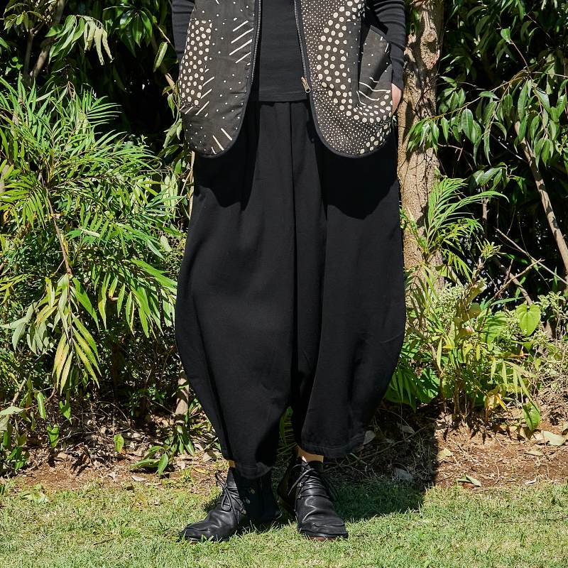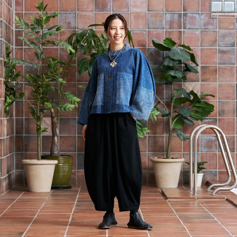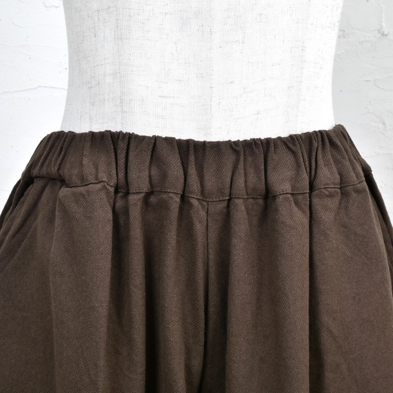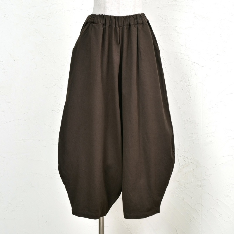 長くご愛用頂けるコットンツイル生地を使用したコクーンパンツ。エスニック感もありながら、すっきりした印象のコクーンシルエットが特徴。どんなアイテムにも合わせやすいブラックとブラウンのカラー展開。秋冬の着こなしにぴったりの生地感で着回し力も抜群。合わせるアイテムを選ばず、無地や柄物両方に対応しやすい深みのある色合いです。