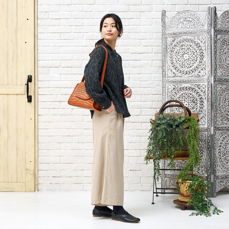 ヒンディー語で"村"という意味。都会の喧騒を離れて、自然のものと、自然に暮らす。そんな心地よい暮らしをテーマにしています。ナチュラルなで素朴な質感や着心地の良い素材。個性豊かで緩やかなシルエットが特徴のブランド。