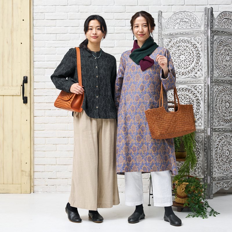 インドで織られた花柄のジャガード生地を使用したシリーズ
