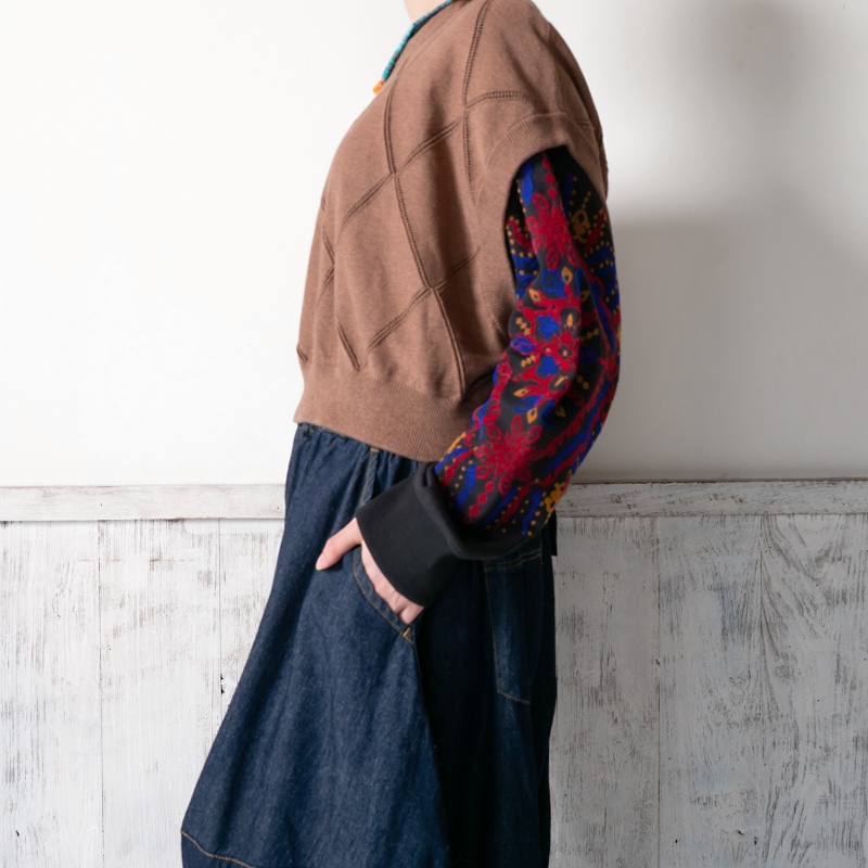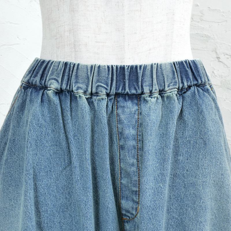 | 仕様 | ウエストゴム入りギャザー(ヒモ付き) サイド・バックポケット付き |