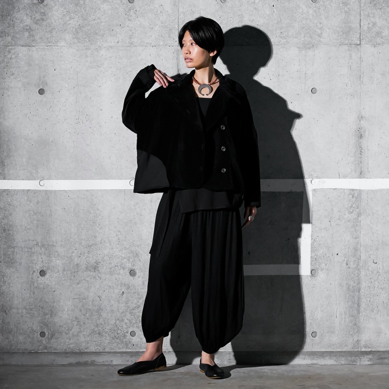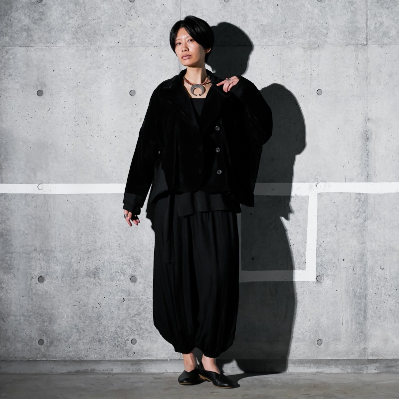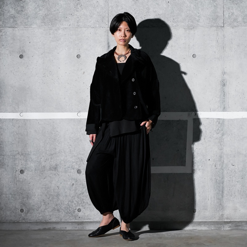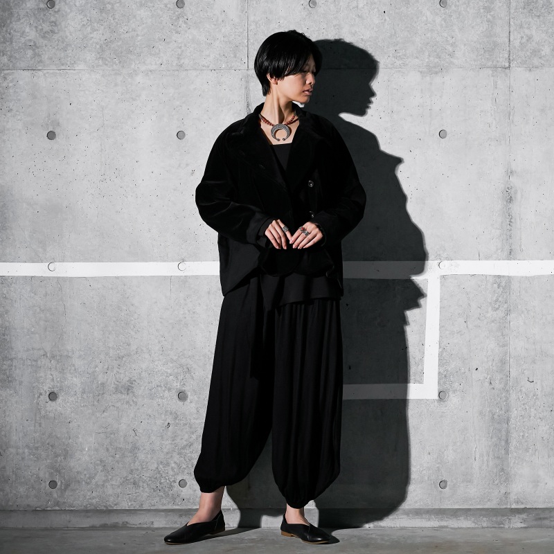モード感を意識したアイテムを展開。変形デザインや落ち感のある生地にこだわったひと味違うモードエスニック。モノトーンなラインナップでクールな印象のファッションブランド。