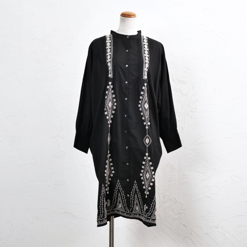 リボン刺繍シャツ前あきワンピース