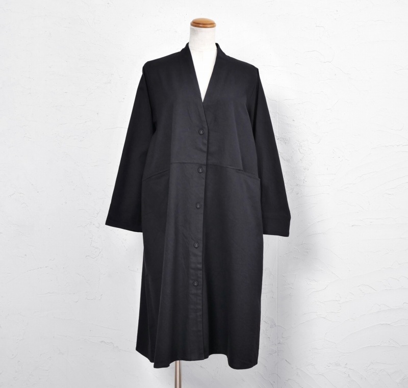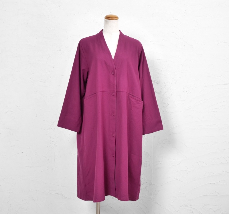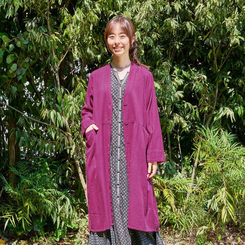 ゆったりしたシンプルなデザインのロングカーディガン。ウエストに切り替えが入ったデザインで大きなポケットが付いている。緩やかに広がるシルエットでありながら、すっきり着ることができるアイテム。スタンダードなブラックと発色の良いパープルの2色展開です。