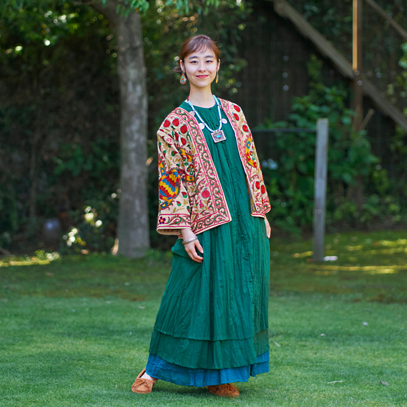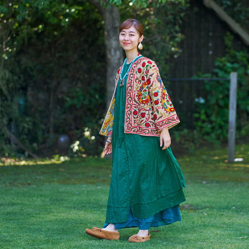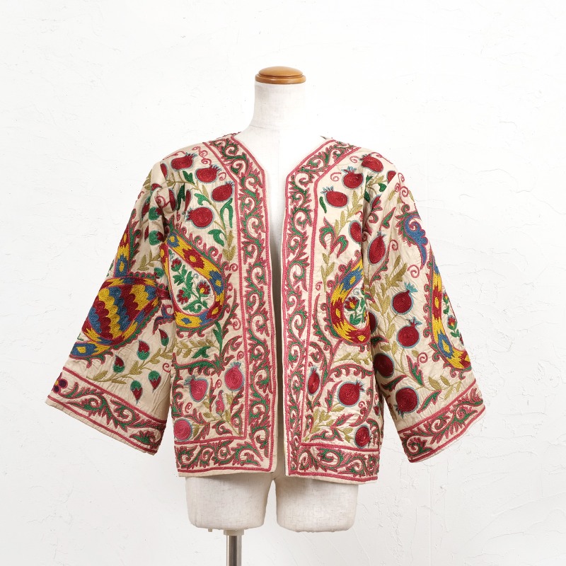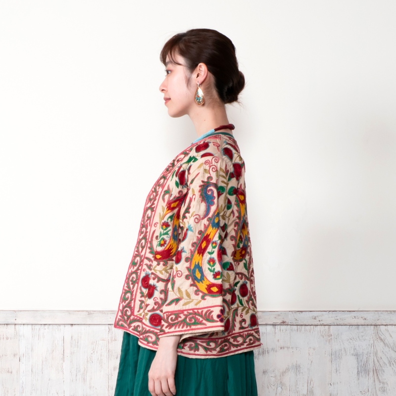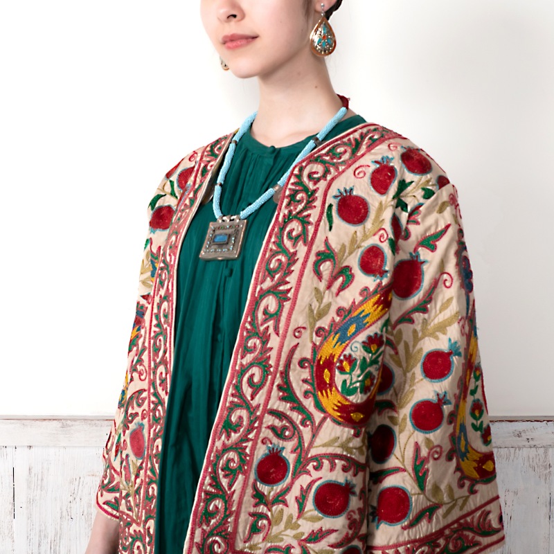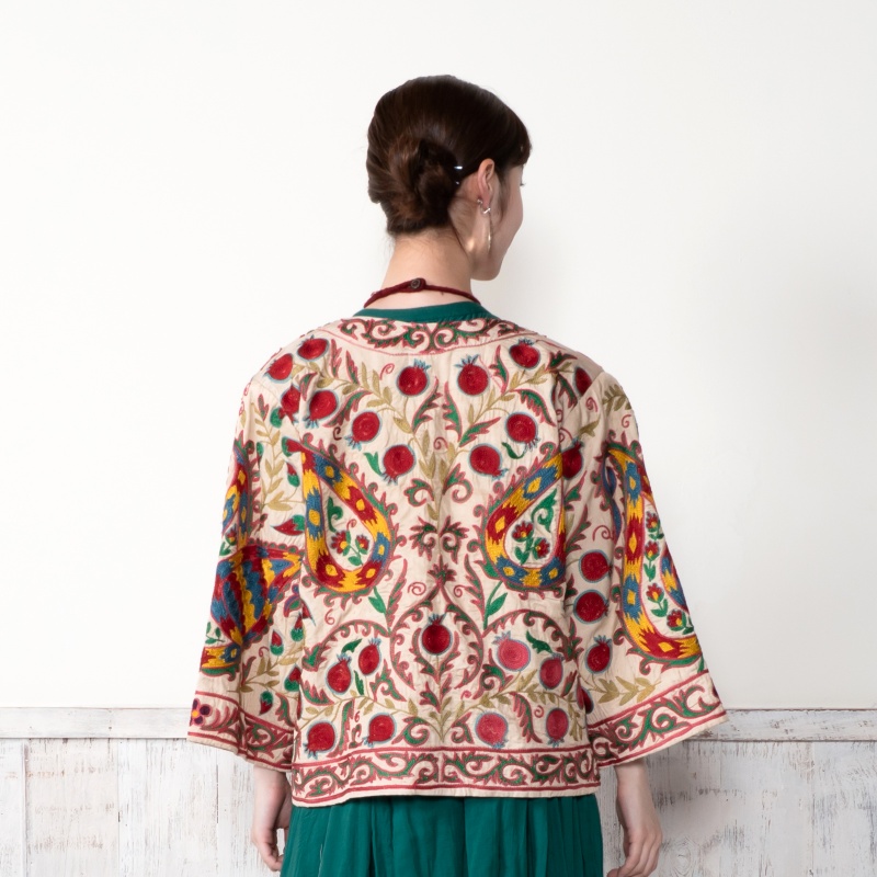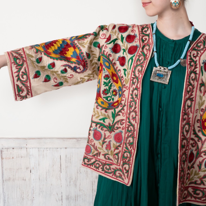 現地で買い付けてきた、カラフルな手刺繍のスザニジャケット