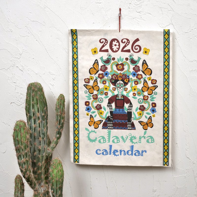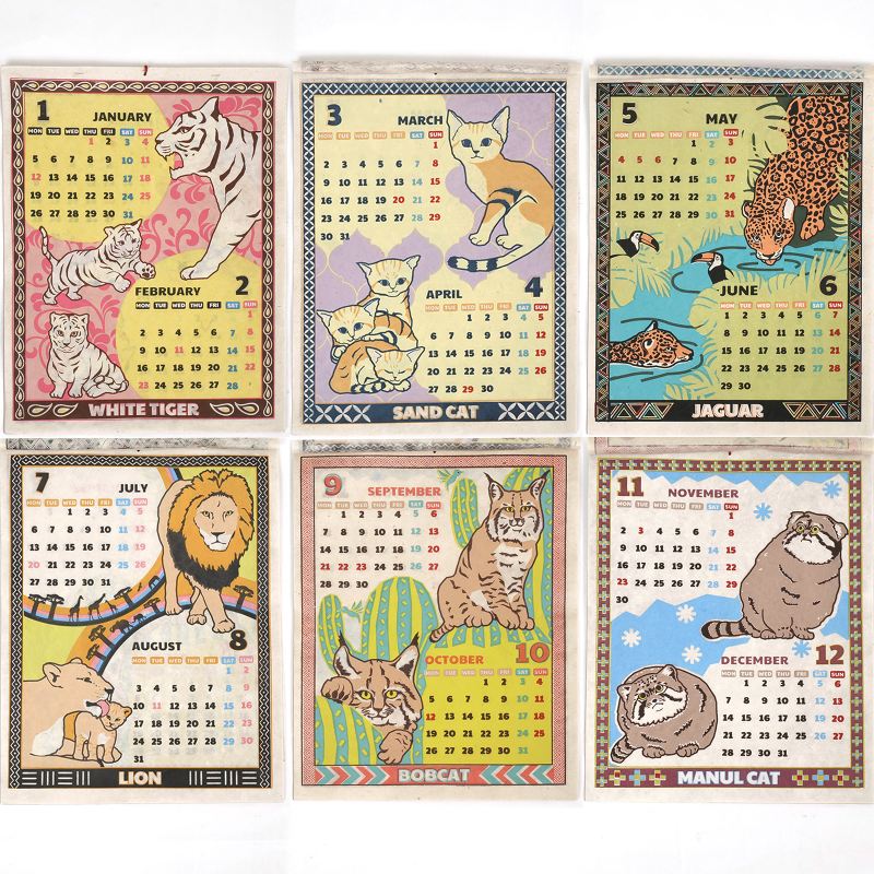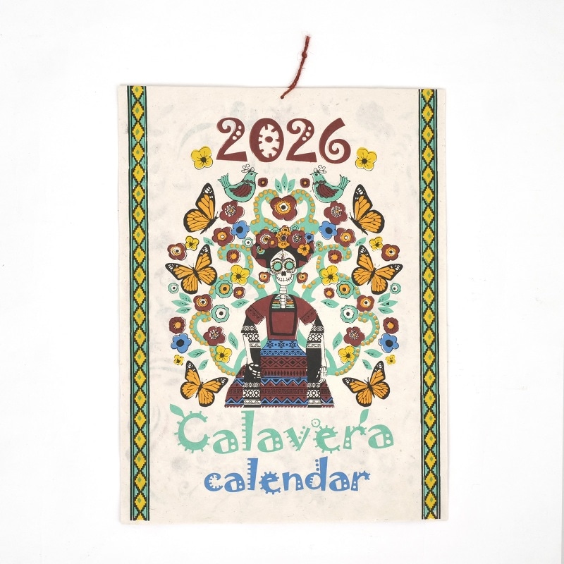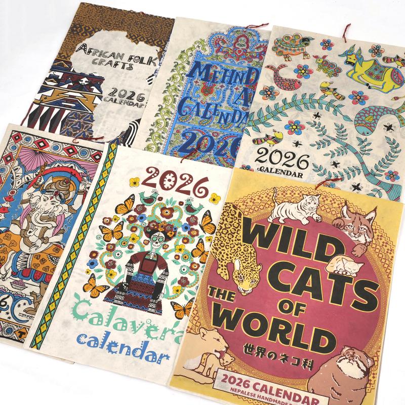 ネパールの手すき紙に、1枚1枚丁寧に模様をほどこした特別なカレンダー。毎年デザイナーが描き起こした図案を、ネパールの職人が手作業で摺りあげています。世界各国の民芸品や文化をモチーフにしたオリジナルデザインで、めくるたびに新しい発見をお届け。ご自分用にはもちろん、大切な方へのギフトにもおすすめの一冊です。