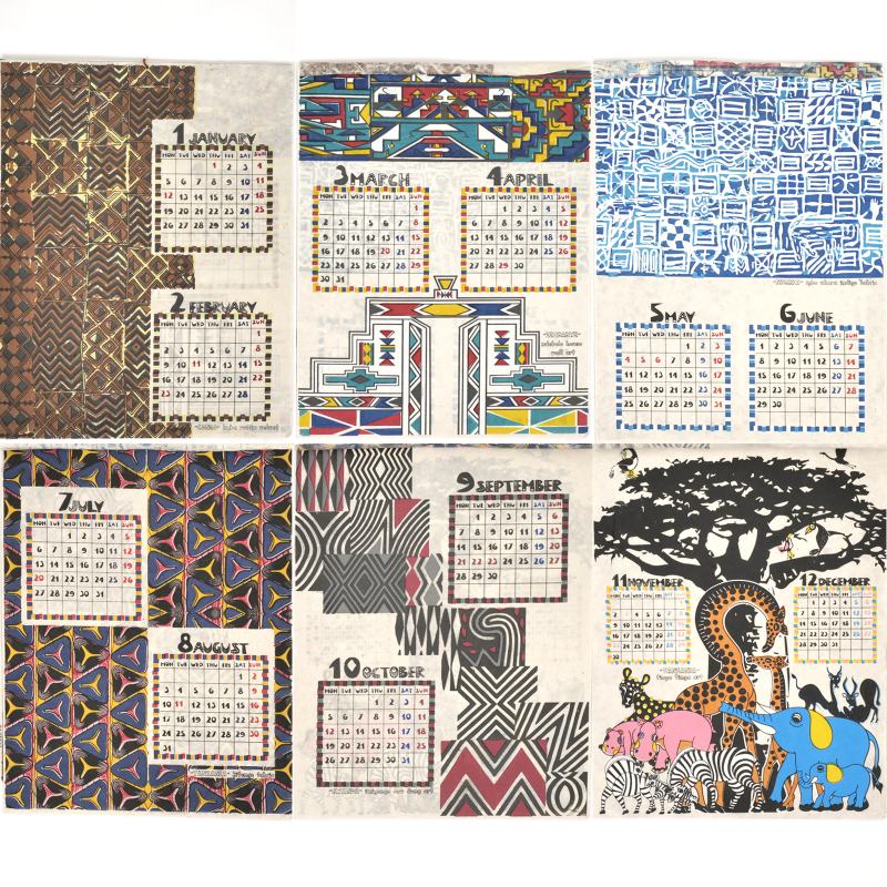 アフリカ各地の伝統工芸をテーマに、布や壁画、絵画に見られる鮮やかな色彩や模様を再現。ルワンダの「イミゴンゴ」やスリ族の文様を取り入れ、各月のフォントもエチオピア・スリ族のボディペイントから着想を得ていちから制作しています。