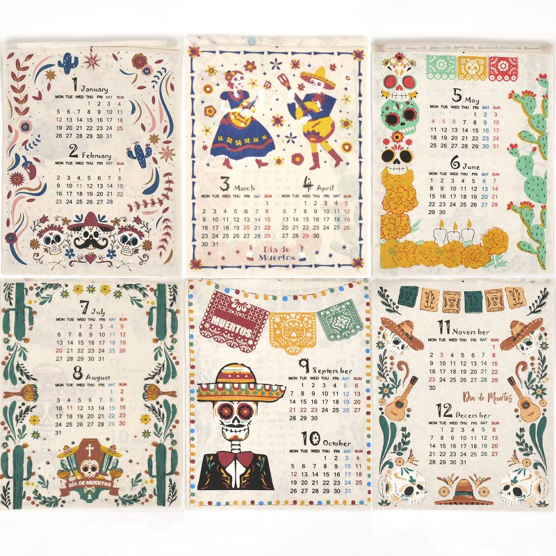 今年のカレンダーはカラベラを購入しました。 なんて楽し気で可愛いガイコツたち! 紙質も素朴で尚且つ上質って感じで凄く気に入ってます。 めくるのが楽しみ♪