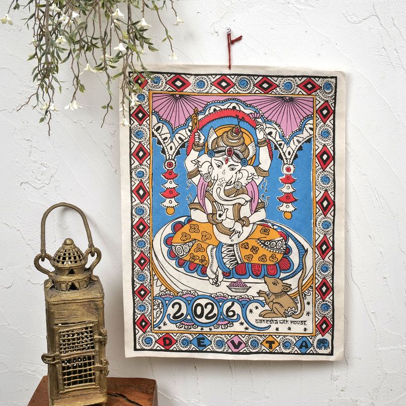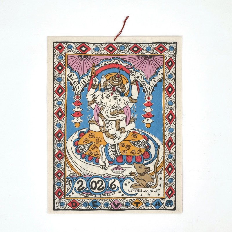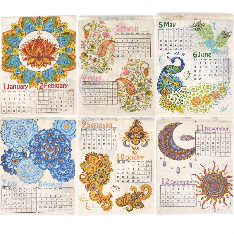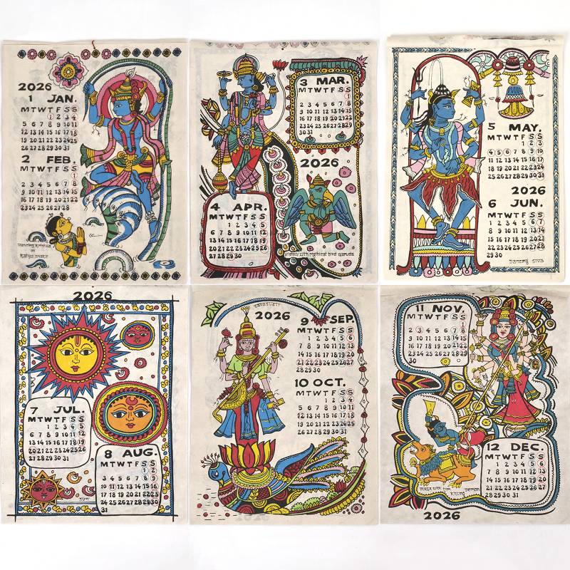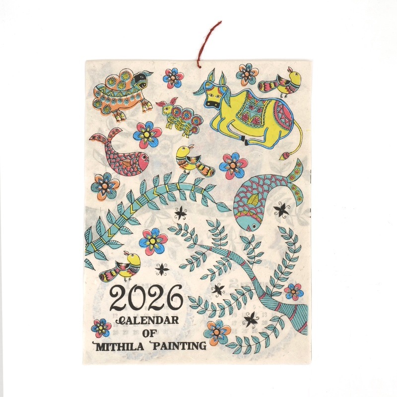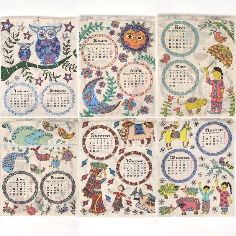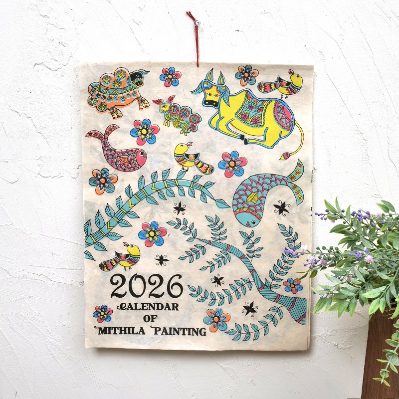 インドとネパールに伝わるミティラー画をモチーフに。自然や日常を素朴で温かみのあるタッチで描きました。月ごとに季節の移ろいを楽しめるデザインです♪