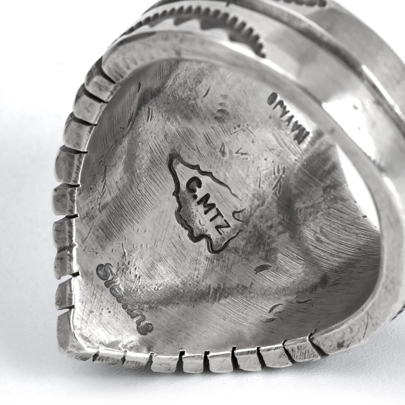| ご注意 | ※ハンドクラフト特有のゆがみ・ずれ等がある為、表記サイズには多少の誤差がございます。 ※銀は経年で硫化する為、画像より黒ずみが増える、またはより綺麗に磨かれてのお届けとなる場合がございます。 ※インディアンジュエリーは伝統的な手仕事による製法上キズ・銀面のムラ・接合のラフさなどが多く見られるジュエリーです。味わいのうちとしてお楽しみください。 |