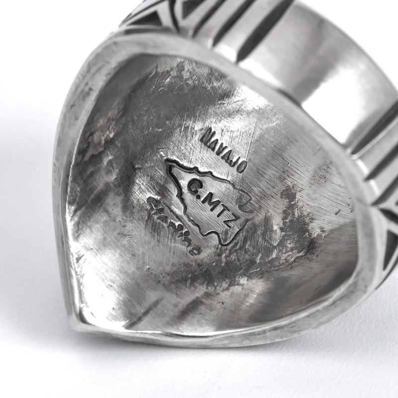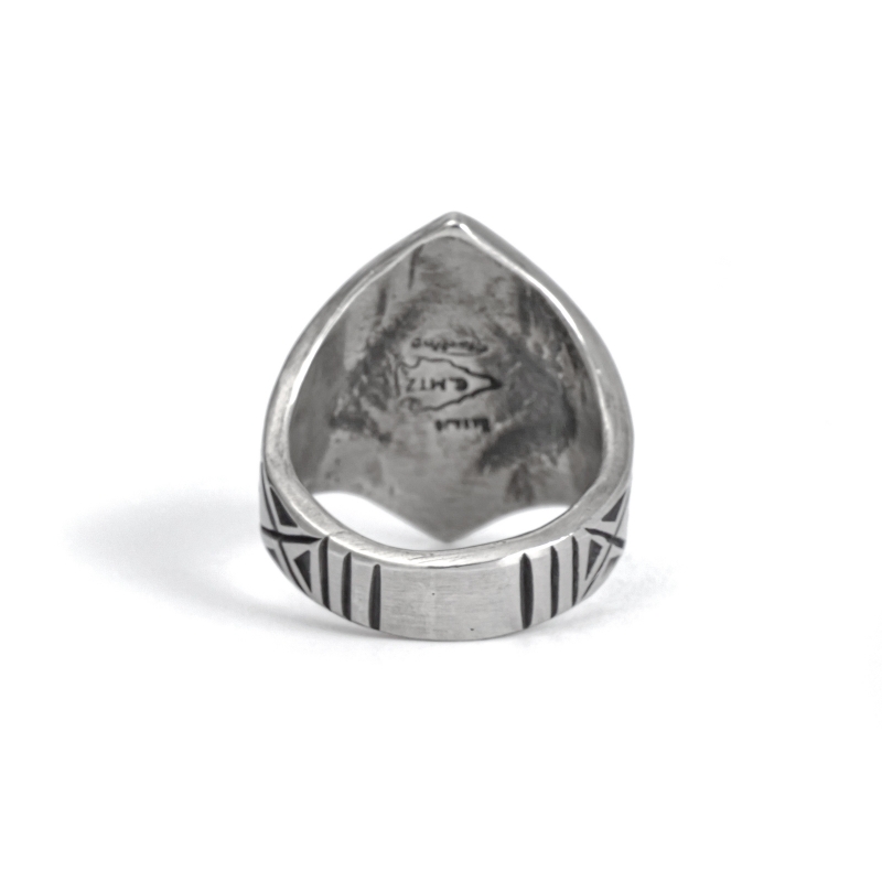 | ご注意 | ※ハンドクラフト特有のゆがみ・ずれ等がある為、表記サイズには多少の誤差がございます。 ※銀は経年で硫化する為、画像より黒ずみが増える、またはより綺麗に磨かれてのお届けとなる場合がございます。 ※インディアンジュエリーは伝統的な手仕事による製法上キズ・銀面のムラ・接合のラフさなどが多く見られるジュエリーです。味わいのうちとしてお楽しみください。 |