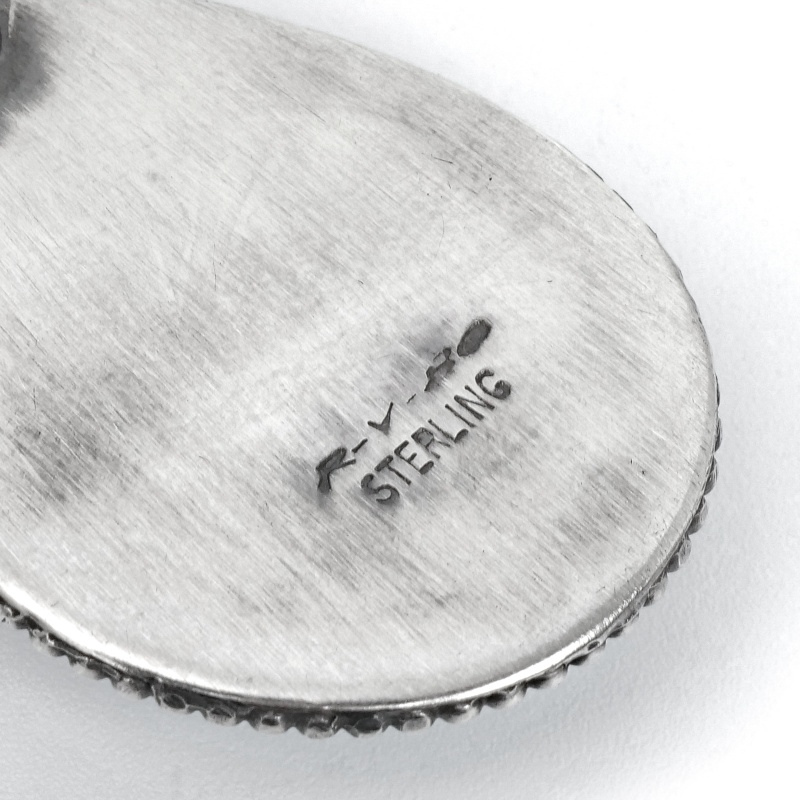| ご注意 | ※ハンドクラフト特有のゆがみ・ずれ等がある為、表記サイズには多少の誤差がございます。 ※銀は経年で硫化する為、画像より黒ずみが増える、またはより綺麗に磨かれてのお届けとなる場合がございます。 ※インディアンジュエリーは伝統的な手仕事による製法上キズ・銀面のムラ・接合のラフさなどが多く見られるジュエリーです。味わいのうちとしてお楽しみください。 |