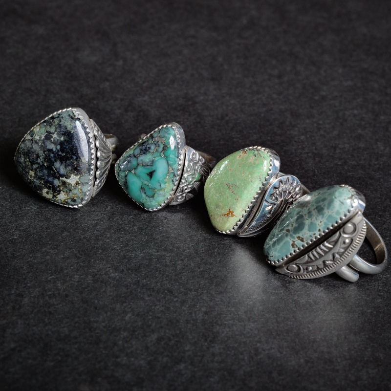 | ご注意 | ※ハンドクラフト特有のゆがみ・ずれ等がある為、表記サイズには多少の誤差がございます。 ※銀は経年で硫化する為、画像より黒ずみが増える、またはより綺麗に磨かれてのお届けとなる場合がございます。 ※インディアンジュエリーは伝統的な手仕事による製法上キズ・銀面のムラ・接合のラフさなどが多く見られるジュエリーです。味わいのうちとしてお楽しみください。 |