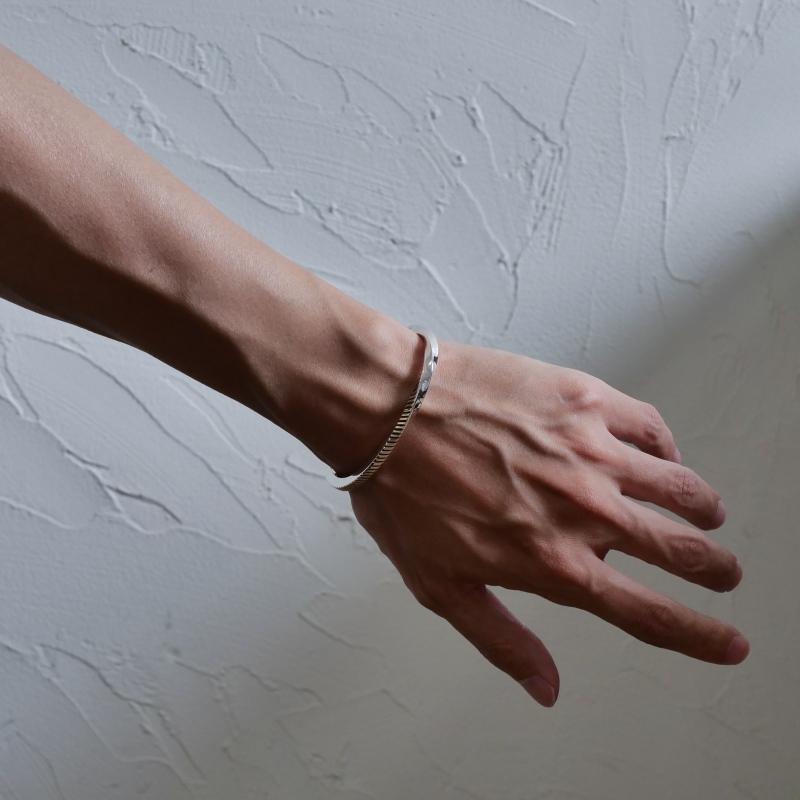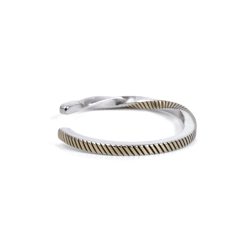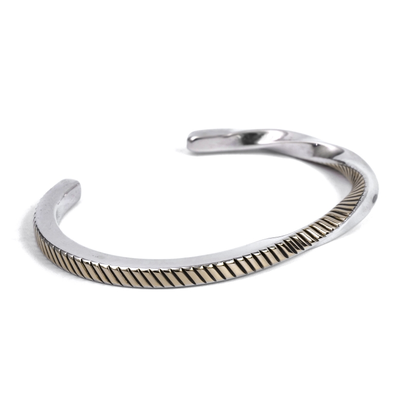 14金×スタンプの細身ハーフツイストバングル