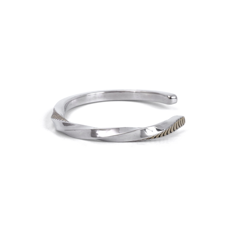 14金×スタンプの細身ハーフツイストバングル
