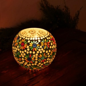 ライトの点灯時と消灯時で雰囲気が変わる、置き型タイプのモザイクランプです。熟練の職人が、ひとつひとつ丁寧にモザイクガラスを並べて仕上げたデザインは、まるで夜空に広がる花火のような輝きがポイント。灯りをともすと、ガラスの粒が光を受けてやわらかく輝き、お部屋全体に幻想的で温かみのある雰囲気を演出してくれます。消灯時にも、ガラスの色彩がインテリアのアクセントとして存在感を放ち、昼も夜も楽しめる手仕事の美しさが詰まったランプです。
