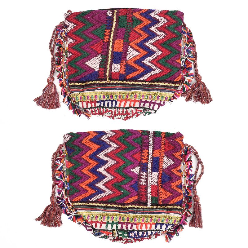 インド・ラバリ族の民族衣装生地を使った巾着ショルダーバッグ