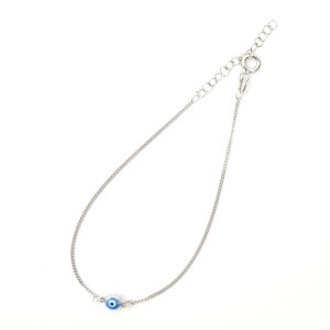 ナザールボンジュウは身に着けることで邪視から災いを跳ねのけると信じられている青い目玉の形をしたトルコのお守り。小粒のナザールボンジュウが控えめに輝くブレスレットは、鮮やかな青いガラスとシルバーのチェーンが軽やかに組み合わさり、どんなシーンにも自然に馴染むデザイン。日常使いにも最適で、気軽に着けられるお守りとしてもおすすめ。