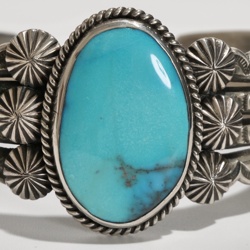 ナバホ族。1964年ニューメキシコ州生まれ。世界中に多くのコレクターを持つトップアーティスト。その作品は大英博物館にも収蔵されています。22歳からの3年間、義理の兄・アーニーリスターの元で伝統的なジュエリー技法を学びます。厳選されたターコイズと銀貨を使用した伝統的作風が特徴で、1890年-1915年に鋳造されたBarber Coinsを好んで使用します。昔のジュエラーのように最低限の道具だけを使用し、ひとつひとつ丁寧に時間をかけて作り上げる作風のため寡作。年に3回しか出展しないショーではブースの前に夜中から列が出来、ショーの開始時間にはすでに売り切れるほど。運良く彼の作品に触れる機会があってもひとり1点しか購入できません。家族との時間をとても大事にし、彼がブースで奥さんやこどもたちと一緒に居る姿はとても穏やかな雰囲気。ゆっくりと落ち着いた口調であまり多くを語らず、一見すると生粋の職人という風情ですが、シルバースミスであると同時に牧師でもある彼の時折見せる笑顔はとても優しい印象です。