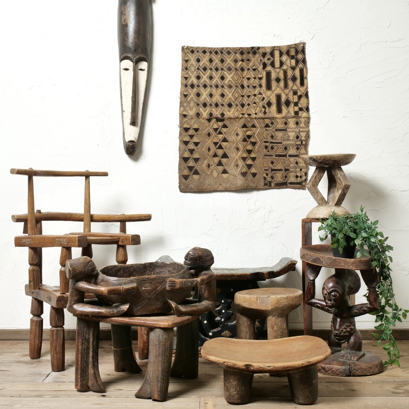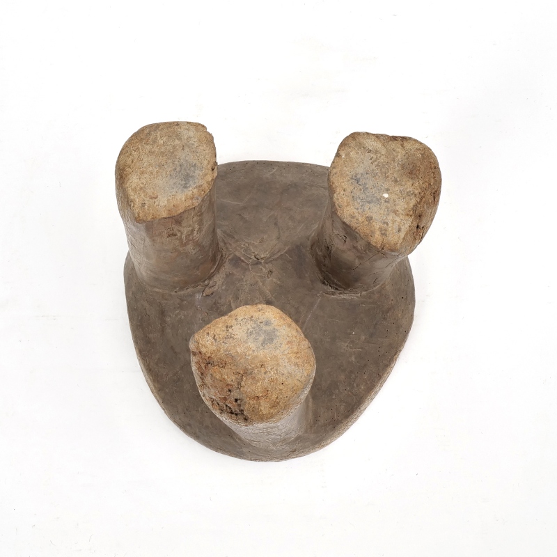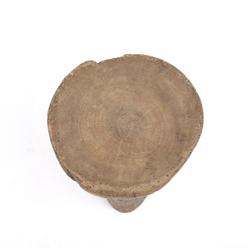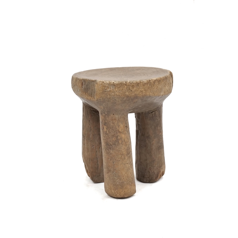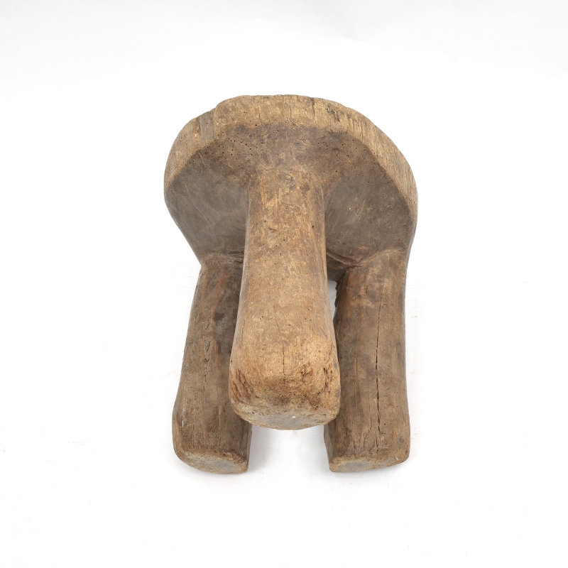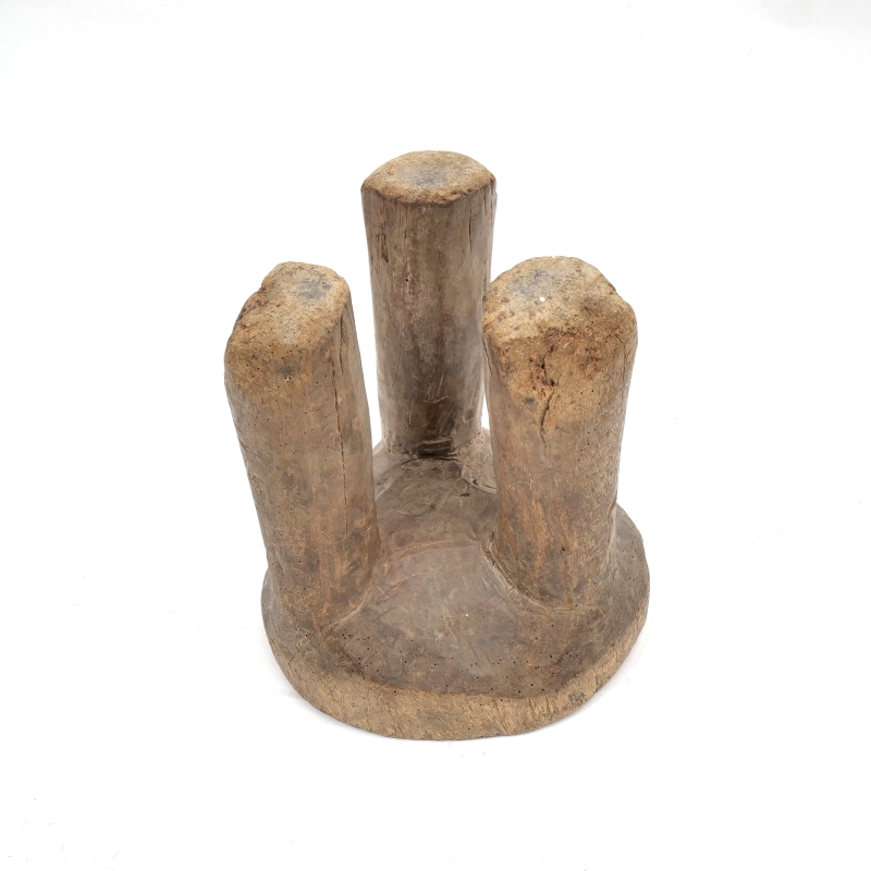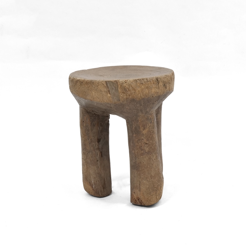 大きな丸太をそのまま一刀彫りでくり抜いて作られたセヌフォ族のウッドスツール。セヌフォ族では4本足のスツールが有名ですがこちらは丸い3本脚の珍しいタイプのスツールです。インパクトのある小物置きやオブジェ、家具としてご自宅や店舗のインテリアに取り入れてみてはいかがでしょうか。