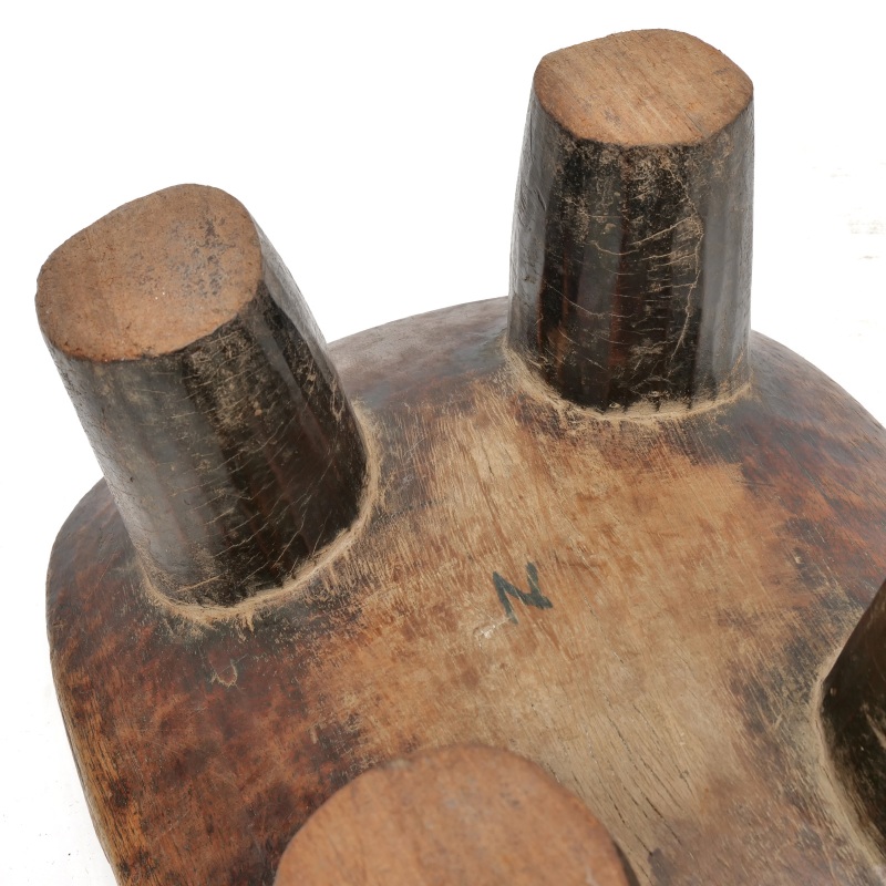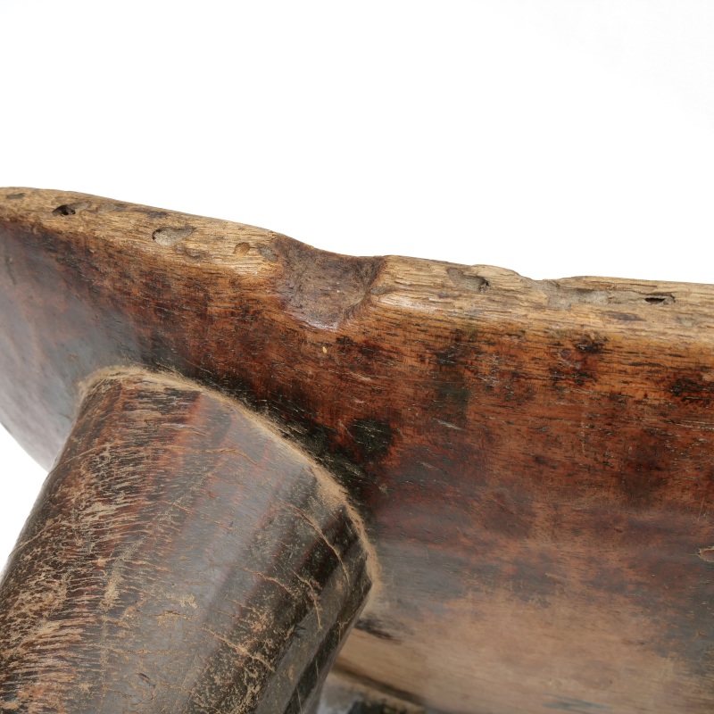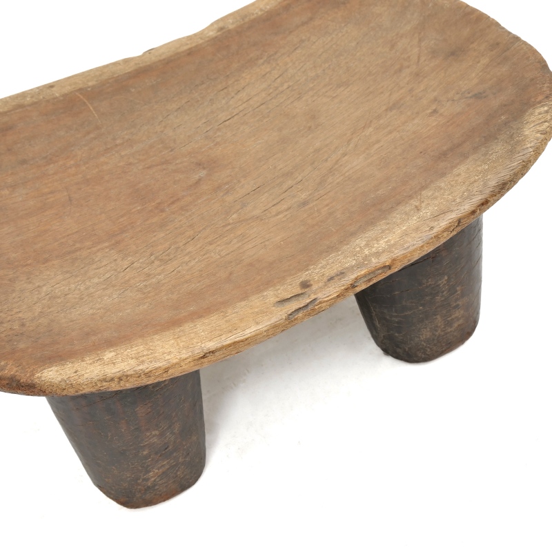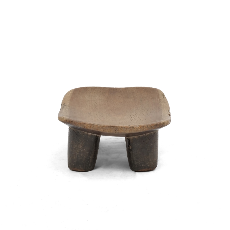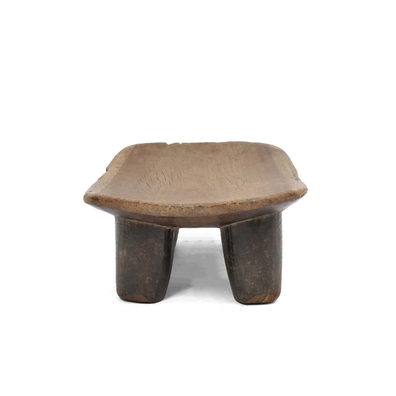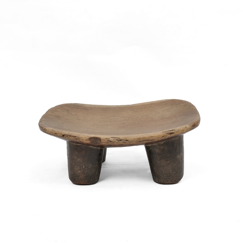 太い丸太をそのまま一刀彫りでくり抜いて作られたセヌフォ族のウッドスツール。太めのテーパードな丸い4本脚に座面が軽く湾曲しておりセヌフォ族のスツールの特徴がよく現れています。インパクトのある小物置きやオブジェ、家具としてご自宅や店舗のインテリアに取り入れてみてはいかがでしょうか。