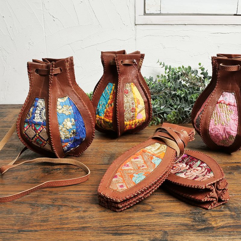 ラジャスタン刺繍レザーピッチャーミニバッグ【メール便可】