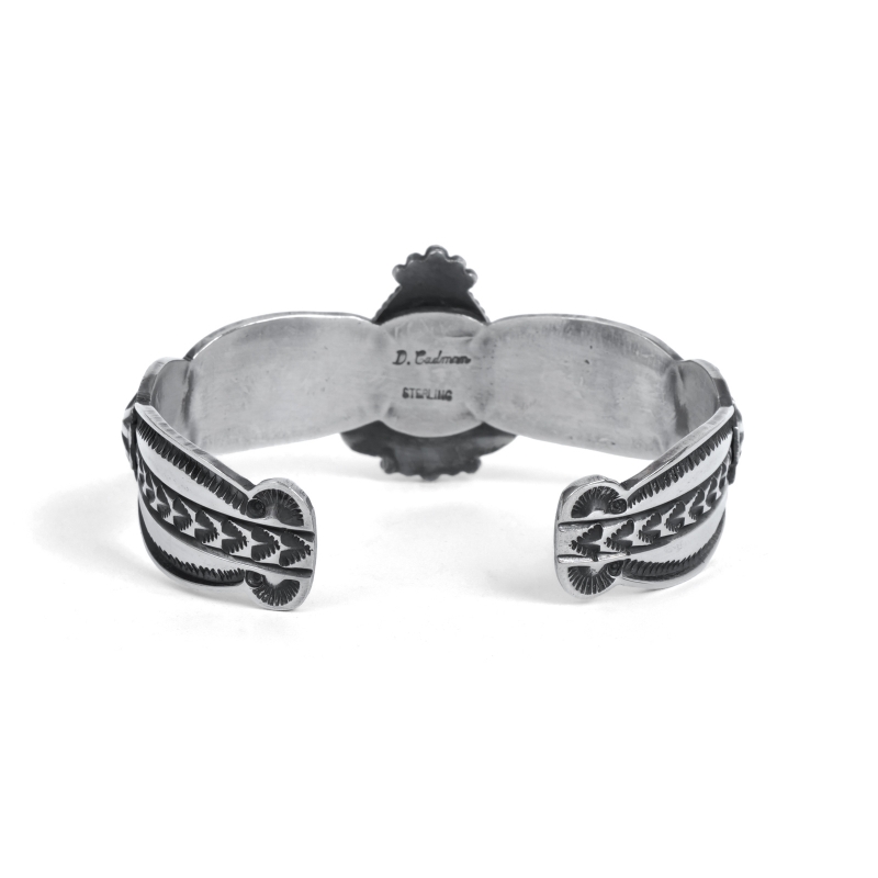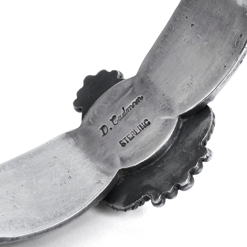 ナバホ族。1968年生まれ、1991年制作開始、2023年9月没。アンディ、ダレルと並ぶキャドマン兄弟の真ん中です。器用で様々なスタイルのジュエリーを作ることが出来、スタンプも仕上げも正確で丁寧な職人肌です。男性はもちろん女性向きのジュエリーも得意としています。刻印はD.CadmanまたはDONOVAN CADMAN。