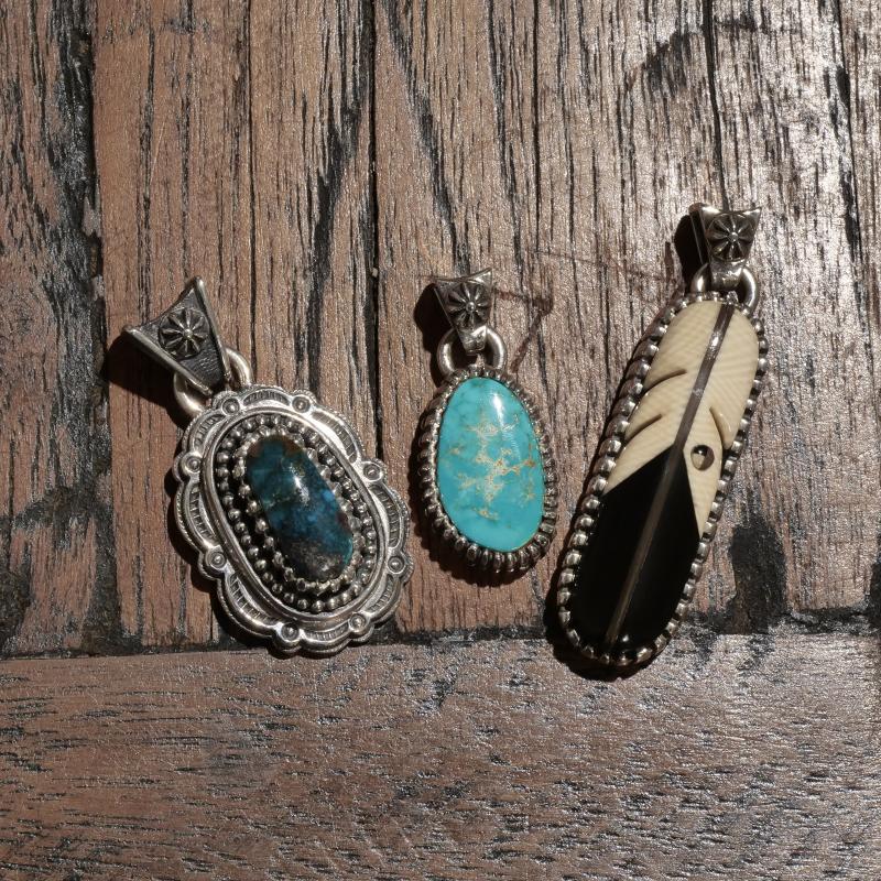 アリゾナ州にあるビズビーでとれるターコイズ。ビズビーも銅山で、ターコイズが発見されたのは6キロも深い地下だったそうです。そこからとれた石は深い紺~黒に近いような青色に茶色~黒のマトリックスが入っており、色が非常に特徴的で人気のあるターコイズの一つになっています。中でも、曇っているように見えるマトリックスが入っているものはスモーキービズビーやラベンダーなどと呼ばれ、コレクターアイテムの一つとなっています。青色が濃く、その中から染み出しているようなマトリックスが入っているものが人気が高く、高価になります。