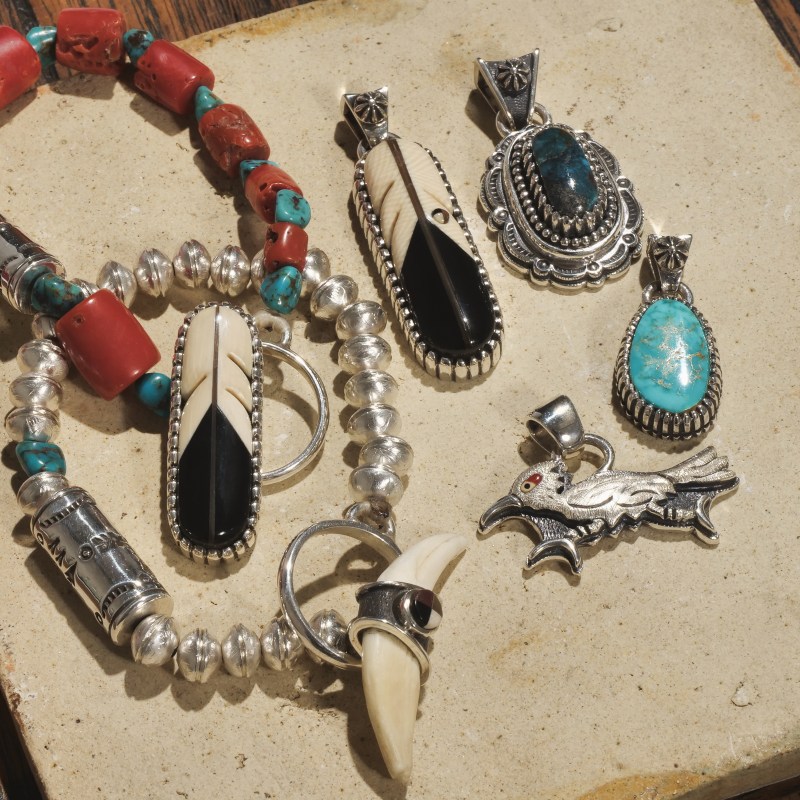 1967年生まれ。1994年制作開始。サウスダコタ州にリザベーションを持つラコタ族のアートに魅せられ五年間をサウスダコタ州で過ごしました。ケビンポーリアー氏をはじめとするラコタアーティスト達から、アートだけに留まらず彼等の文化や伝統についても学んできました。ラコタ族の友人たちと、共に泣いたり、笑ったり、まさに生活をしながら肌で感じたことが彼のジュエリーの芯になっています。堀江純のジュエリーと姿は、ラコタ族の新聞“ラコタジャーナル”の、ラコタアーテイストをとりあげる欄に、ノンネイティブながら “Far East Meets Lakota Calture”のタイトルでとりあげられました。作風はネイティブアメリカンからの影響と日本の彫金技法を組み合わせた、どこにもない独特の世界観を持つオリジナリティ溢れるものです。