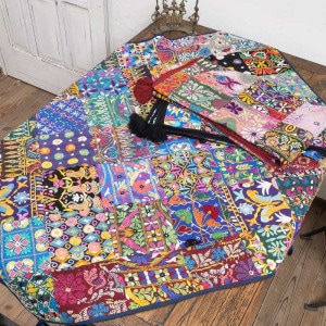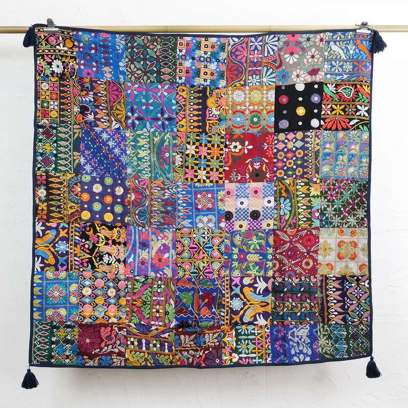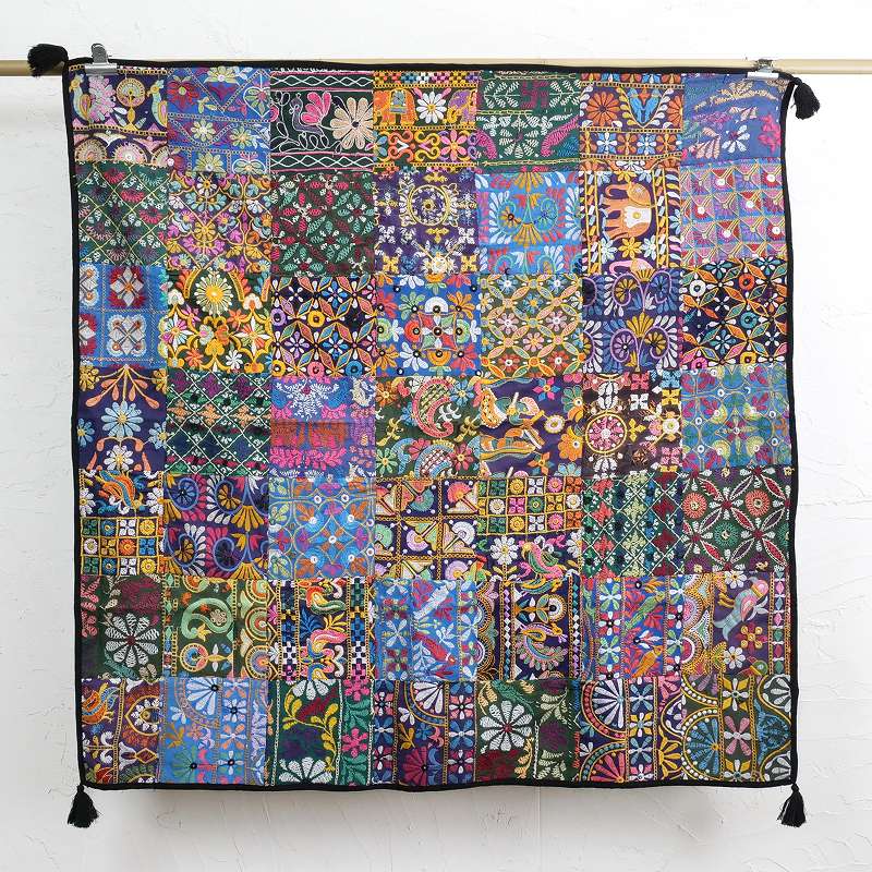 カッチ刺繍古布パッチワークマルチクロス 105cm×105cm