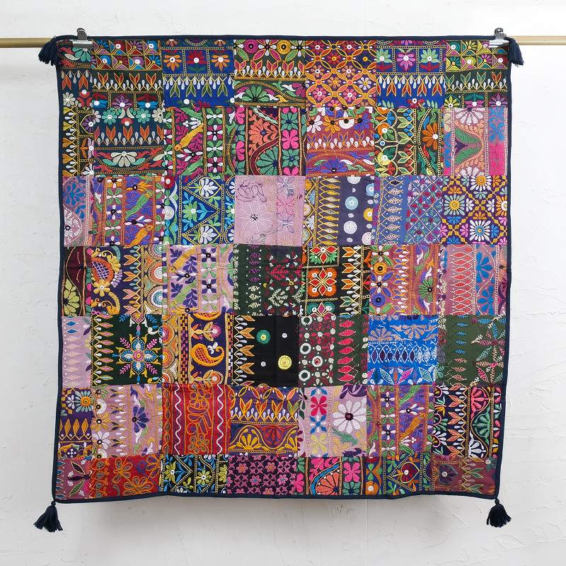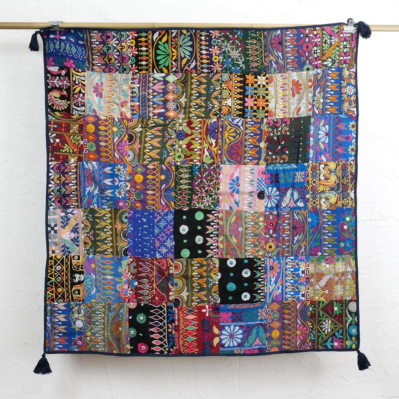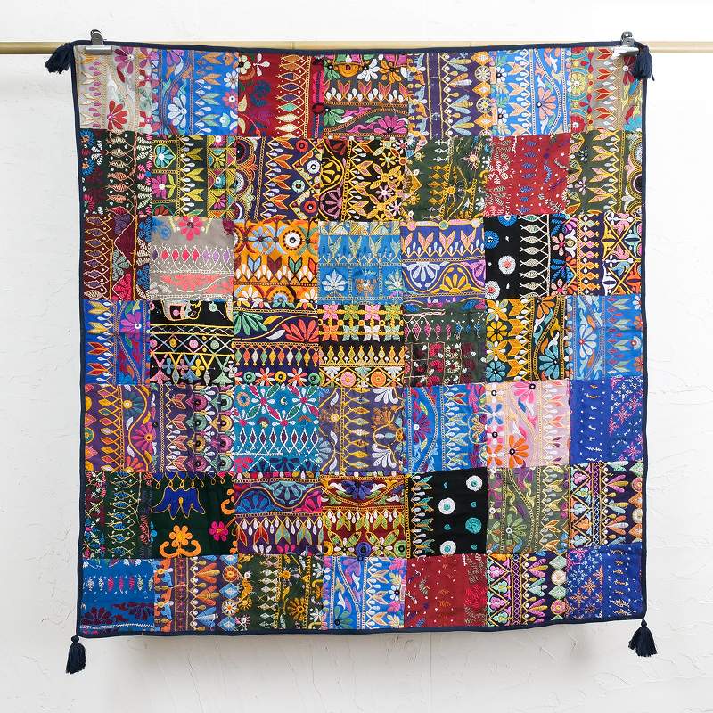 インドの砂漠地帯の華やかな刺繍古布を使ったパッチワーククロス