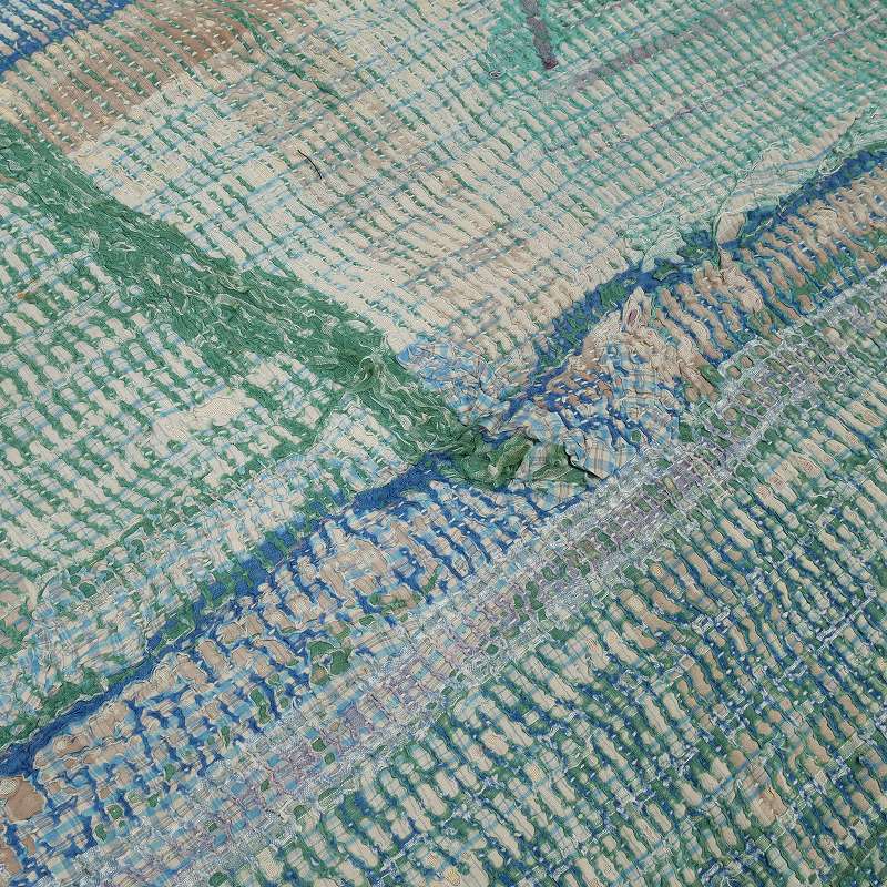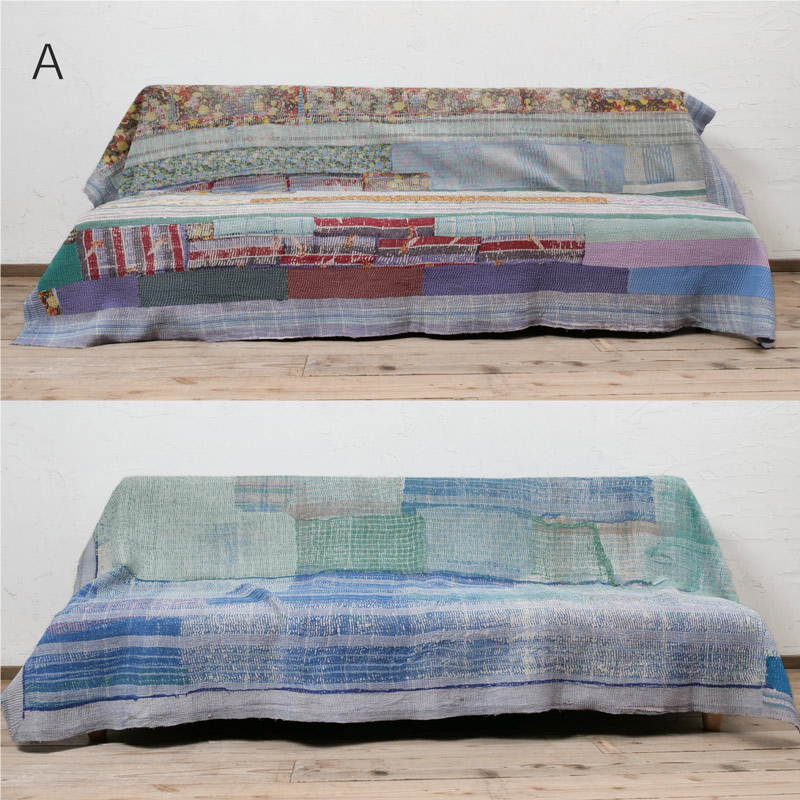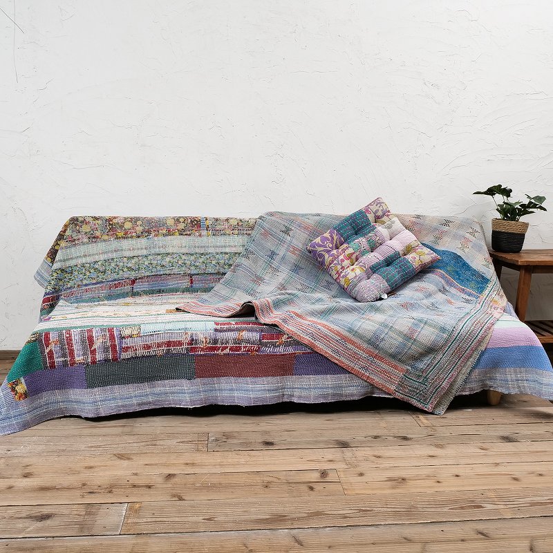 使い古してさらに味わい深くなったグドゥリー古布をパッチワークしたマルチクロス。通常のグドゥリー商品と違い、使用されたグドゥリー古布の為、摩耗して刺し子部分の凹凸が際立っていたり、生地部分が薄くなったり破れて下に重ねた生地が見えていて、独特の風合いがあります。柔らかい肉厚のコットン生地で、重みがありソファカバーやラグなどマルチに使えるファブリック。時間の経過と共に偶然に生まれた色の組み合わせや、破れやツギハギの生地の表情が愛おしいアイテム。