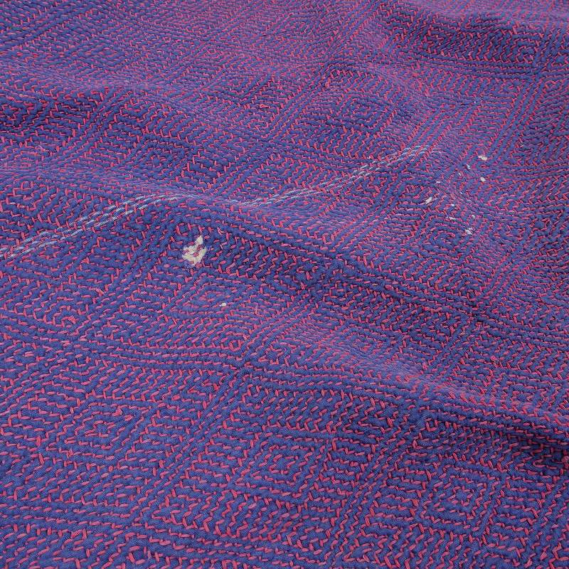古くから使用されてきた様々なアンティーク生地を組み合わせたグドゥリー。1つ1つ異なる1点ものの貴重なアイテム。大きめサイズなので、ソファーカバーやベッドカバー、ラグなどマルチに使えるファブリック。生地全体に施された刺し子は圧巻で、緻密な刺し子模様が施されたワンランク上のグドゥリークロス。しっかりとした生地でラグなどにもおすすめ。