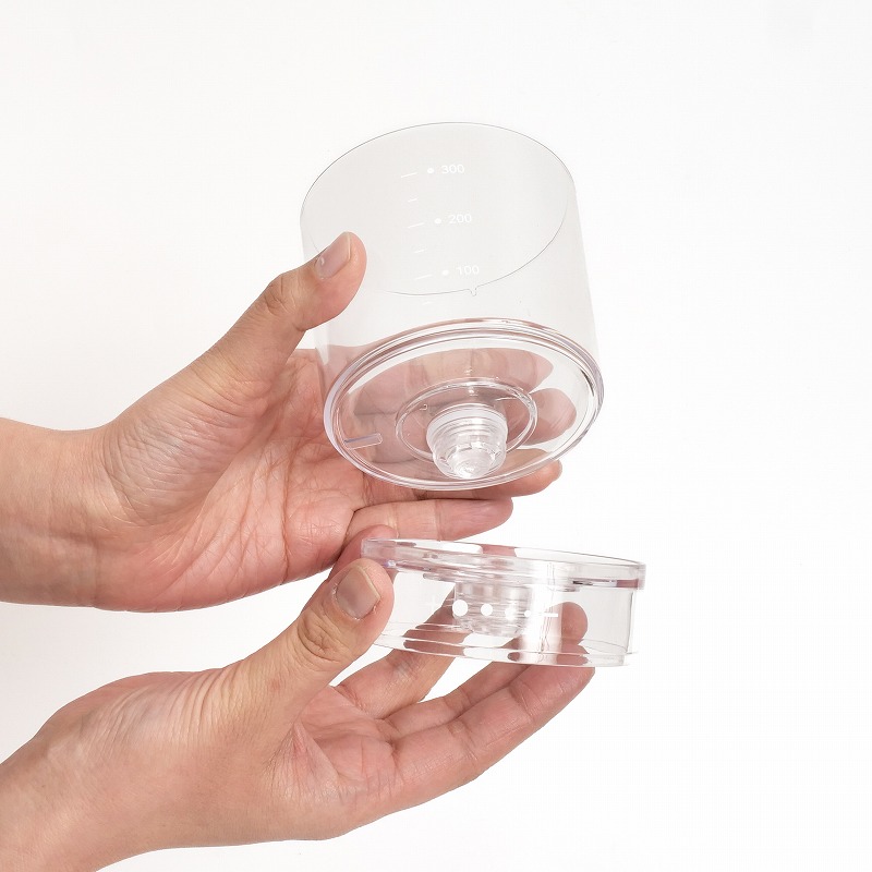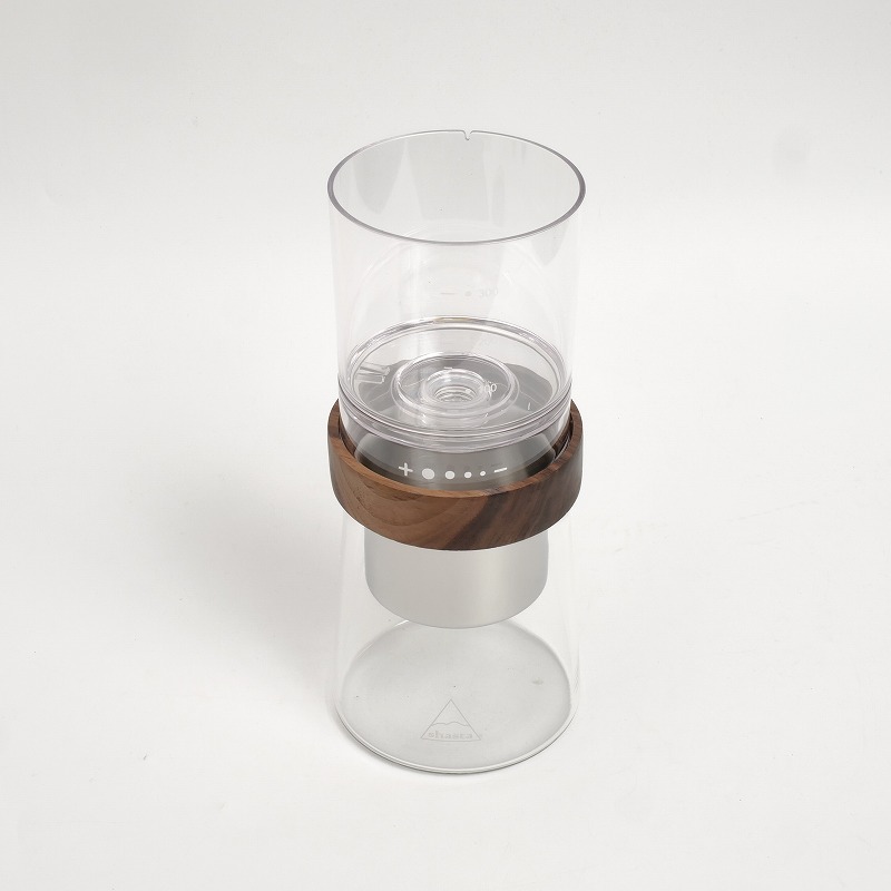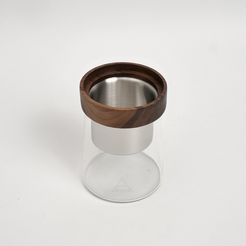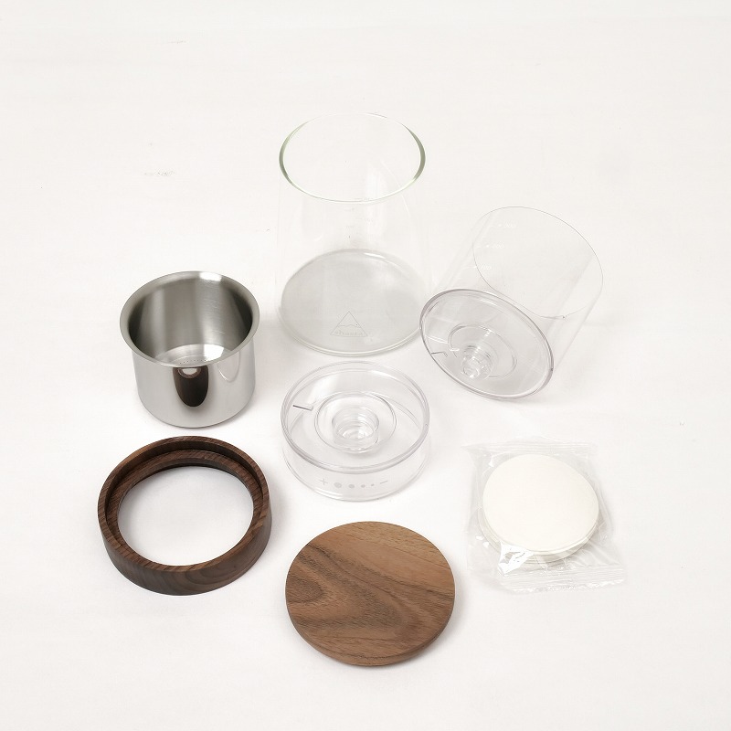 | 素材 | ポット:ガラス(耐熱ガラス/耐熱温度差 120℃) フタ、フィルターホルダー:天然木(ウォールナットウッド) 水タンク、点滴調整ノズル:AS樹脂 フィルター:ステンレス(SUS304) |