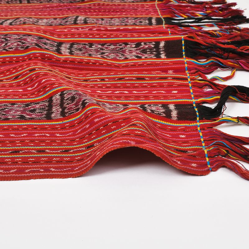 インドネシア・ティモール島のイカット。赤やピンクを基調としたストライプが華やかな1点。