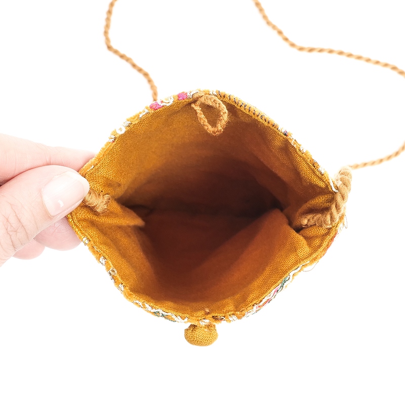 ザリ刺繍ベルベット巾着ショルダーバッグ【メール便可】