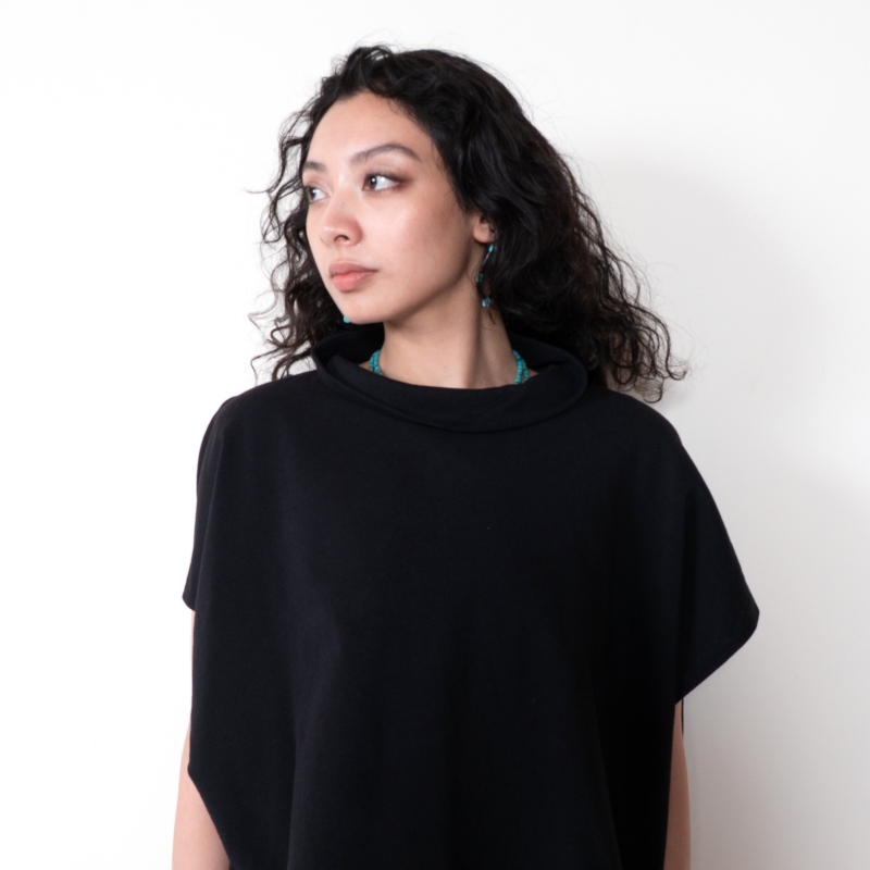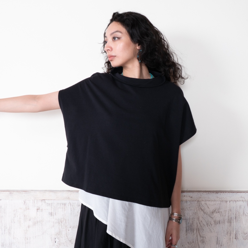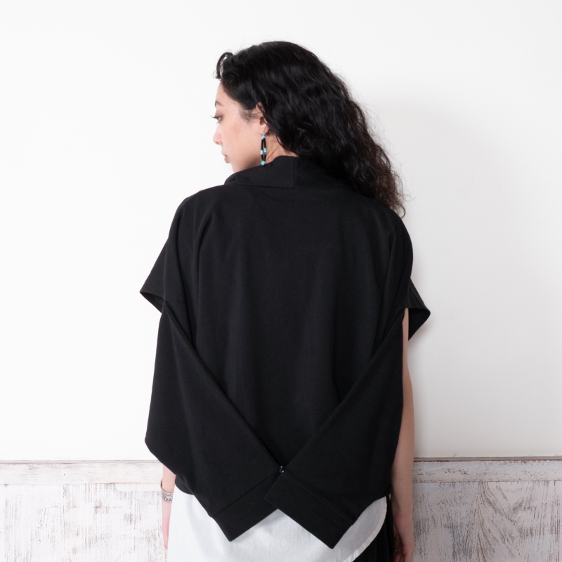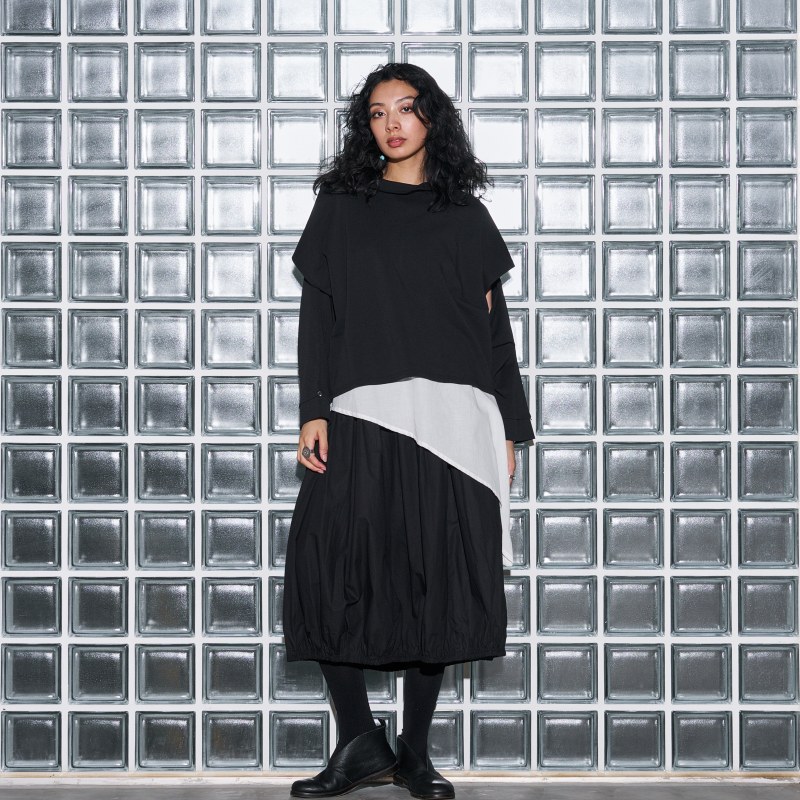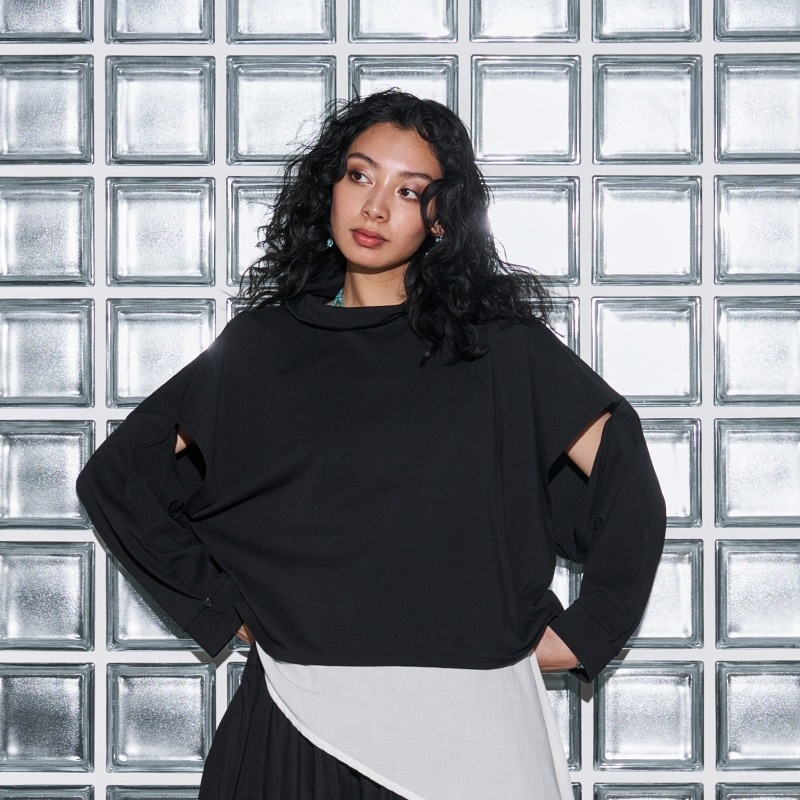 | 仕様 | オフタートルネック 袖カットオフデザイン 袖アレンジ可(袖口ボタン・ループ付き) |