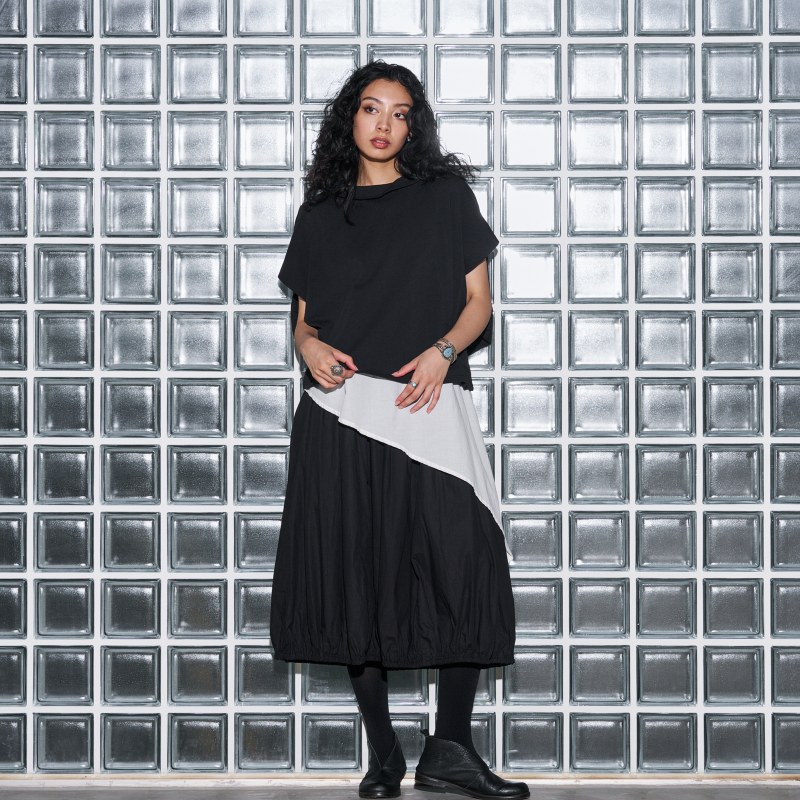モード感を意識したアイテムを展開。変形デザインや落ち感のある生地にこだわったひと味違うモードエスニック。モノトーンなラインナップでクールな印象のファッションブランド。